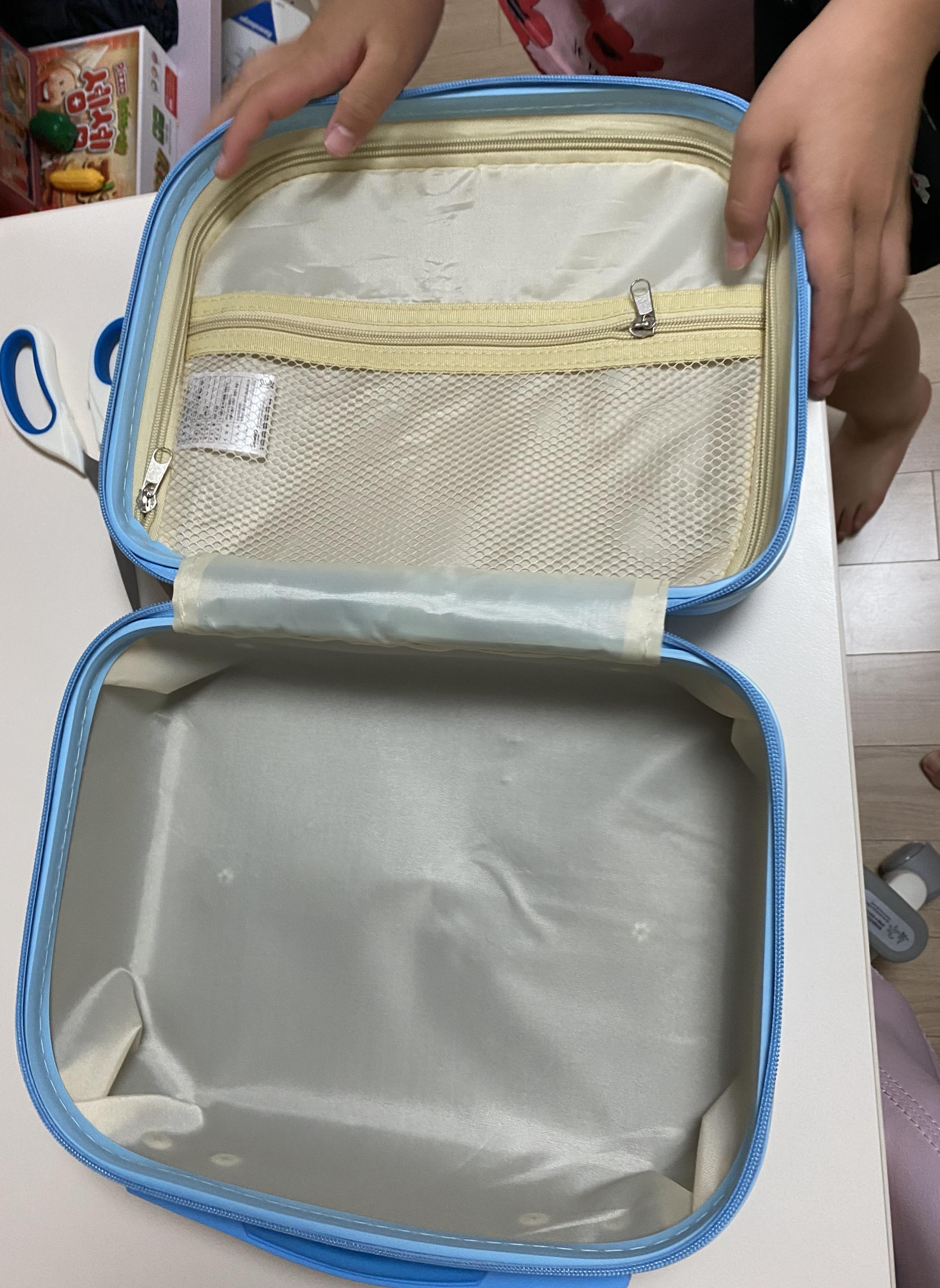 안쪽의 재질도 상당히 좋아 보였습니다. 매쉬 포켓으로 수납공간을 분리해서 활용할 수 있어서 여행 갈 때 아이들 짐을 싣기 유용한 미니캐리어입니다. 이번 여름에 여행이나 피크닉 갈 때 딸의 가방으로 잘 활용해서 사용해야겠네요.