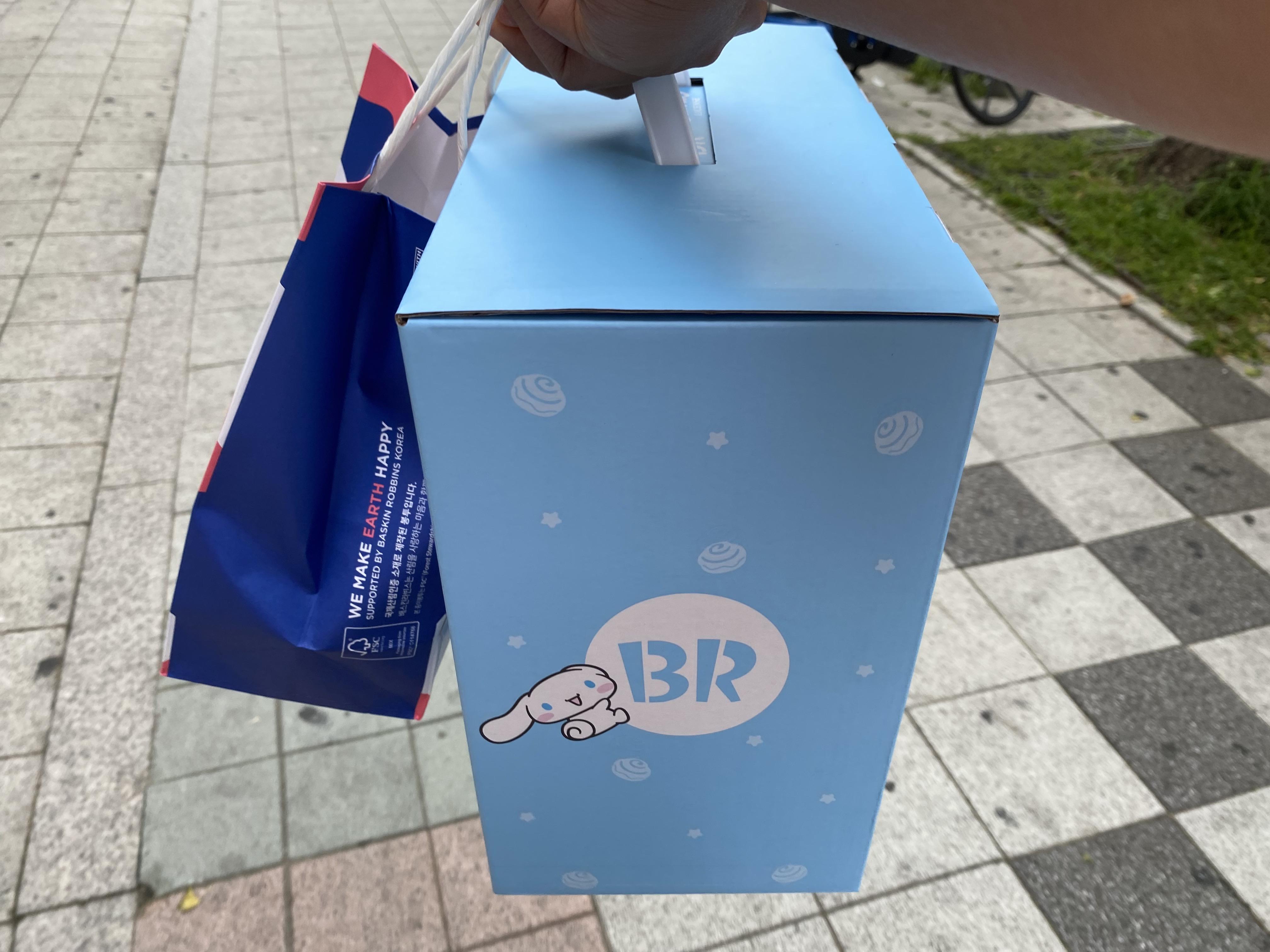 아이스크림은 그저 거들 뿐이고 미니캐리백이 더 중요했습니다. 딸이 너무 좋아하는 산리오 캐릭터여서 저도 수령하고 돌아가는 길이 너무 뿌듯했습니다. 저는 사실 와이프가 시켜서 갔기 때문에 저 안에 뭐가 들어 있는지도 몰랐습니다. 그래서 들고 가는 내내 뭐가 들어있을지 궁금했습니다.