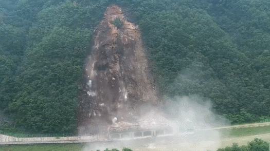강원도 정선에서 14일에 봉양리 군도 3호서 피암터널 경사면에서 산사태가 발생했습니다. 6000여 톤 규모의 암석이 무너져 내렸지만 다행히 인명피해는 발생하지 않았습니다.