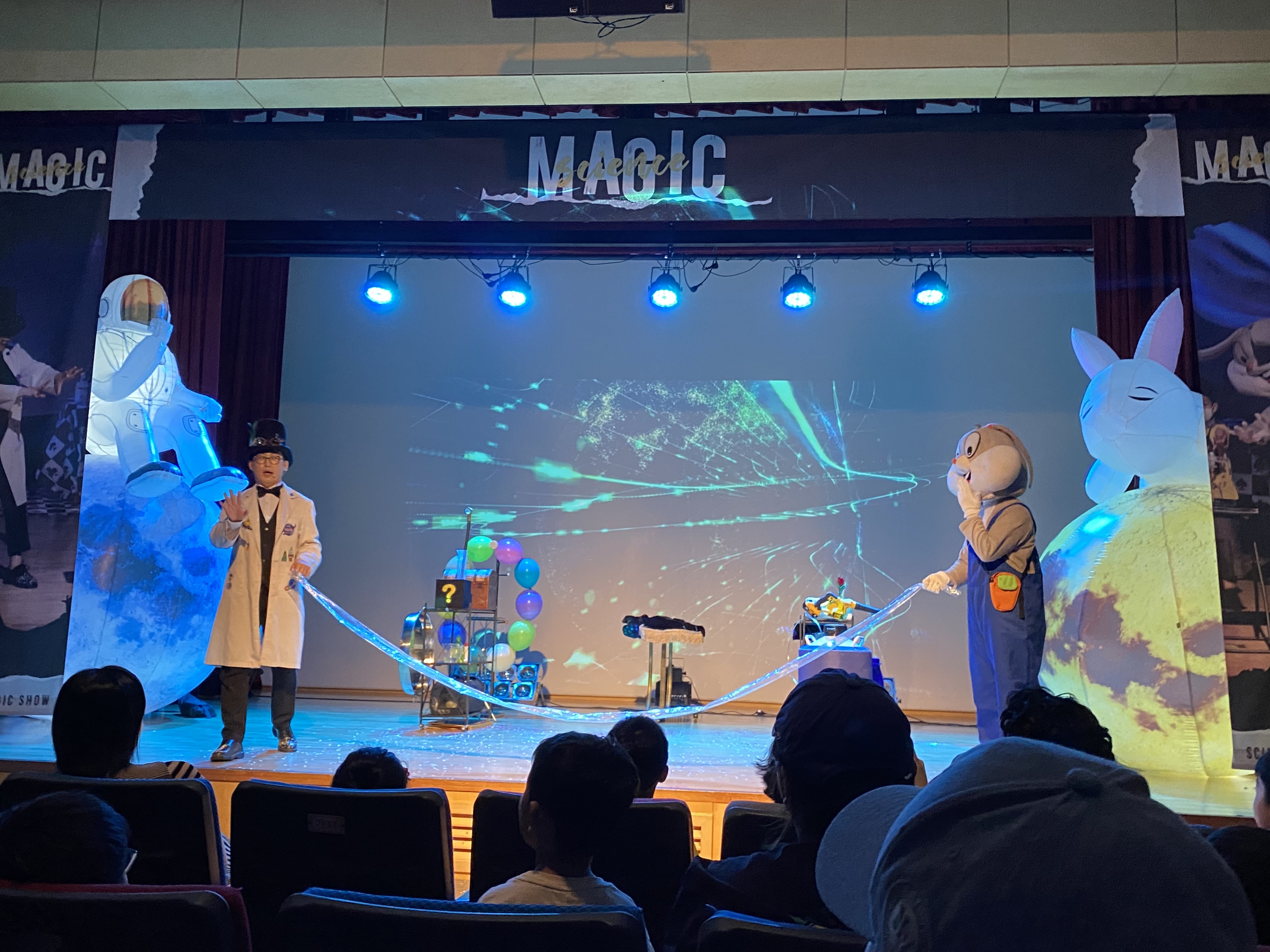 마술사 제이티의 등장과 함께 간단한 마술쇼가 시작됩니다. 워밍업으로 아이들이 좋아할 만한 마술들을 보여줍니다.