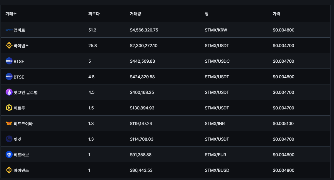 스톰엑스는 업비트, 바이낸스, BTSE, 빗겟, 핫코인 글로벌 등에 상장이 되어 있습니다.