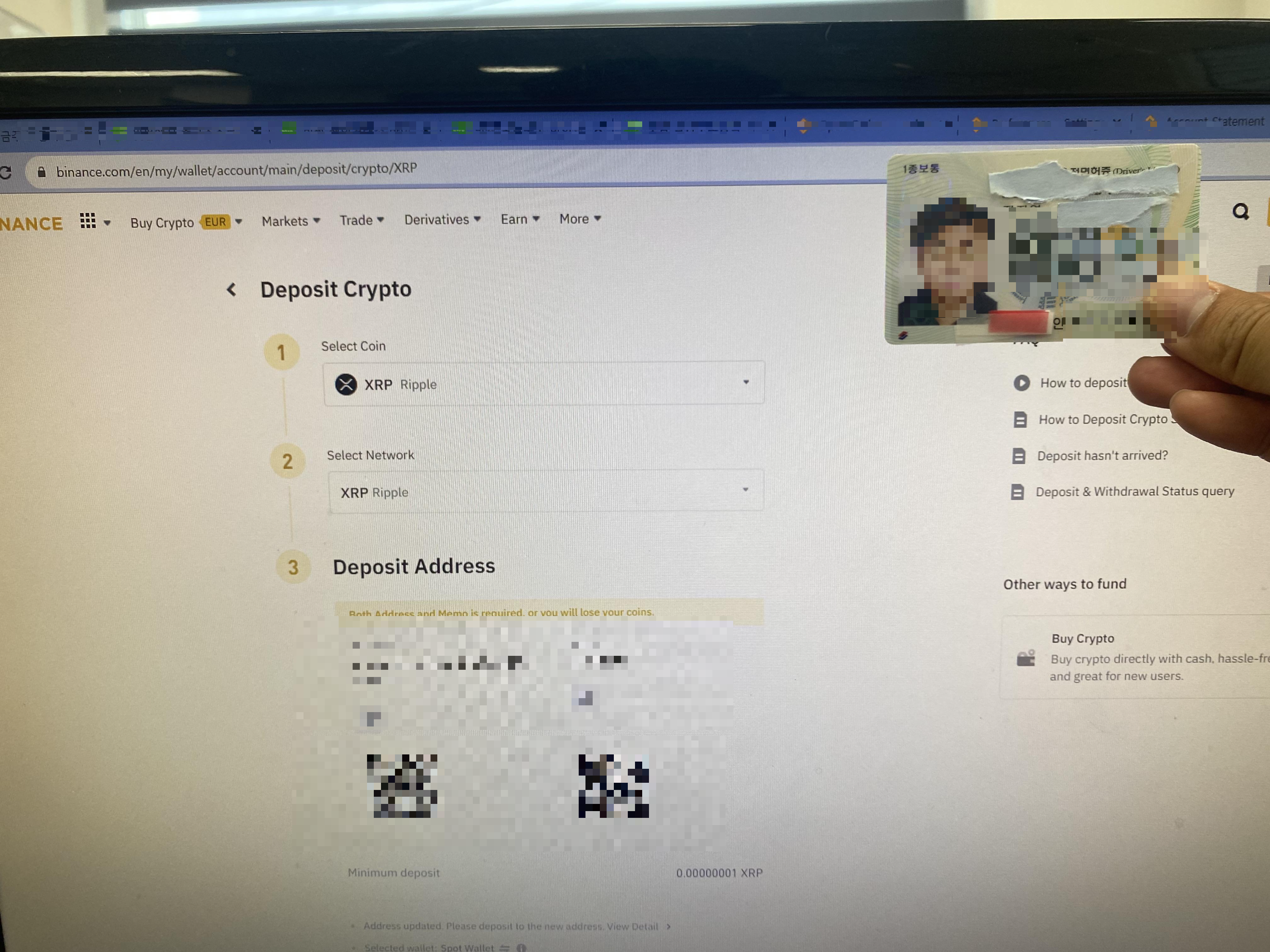 주소를 등록하기 위해서 입금할 주소의 거래소의 정보와 함께 사진을 찍어야 합니다. 신분증 기준으로는 주민등록번호 뒷자리와 발행년도를 마스킹하고 하고 사진을 찍으셔야 합니다.