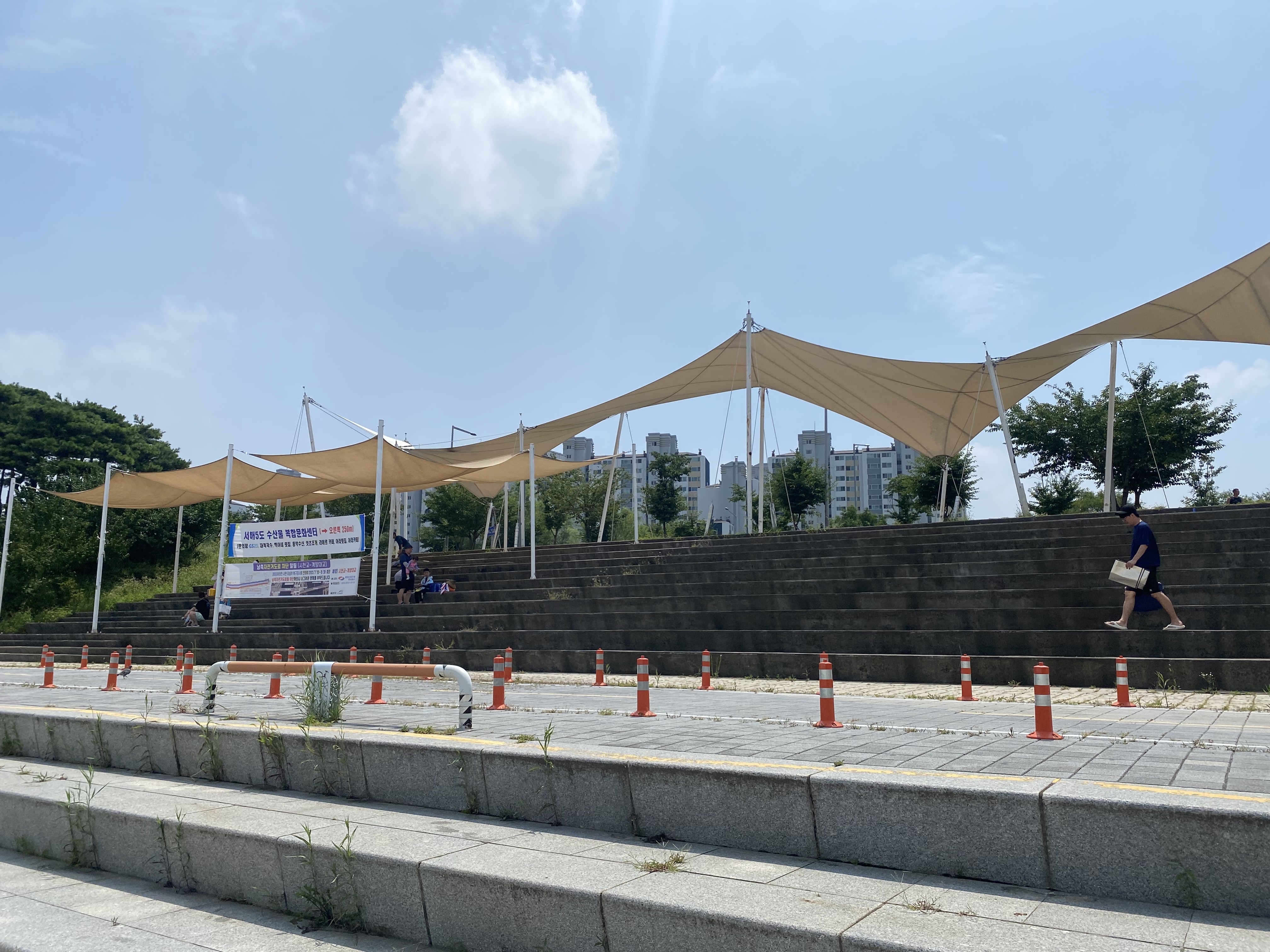 그래서 사실 갈만한 곳이 없었는데 아라뱃길 시천가람터 물놀이장이 운영한다는 소식을 듣고 바로 출발했습니다.