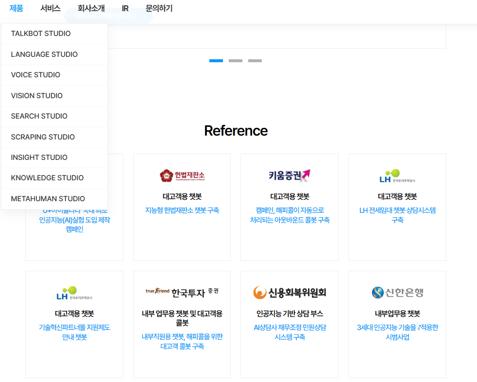 금융산업의 디지털 전환과 AI로의 전환을 위해 다양한 솔루션을 개발하고 있습니다. 금융 기관의 고객센터 지능화를 위한 챗봇과 콜봇, 대규모 데이터 분석체계, 기업 리스크 관리, 부실 예측 등 인공지능 기술을 활용한 혁신적인 솔루션을 제공합니다.