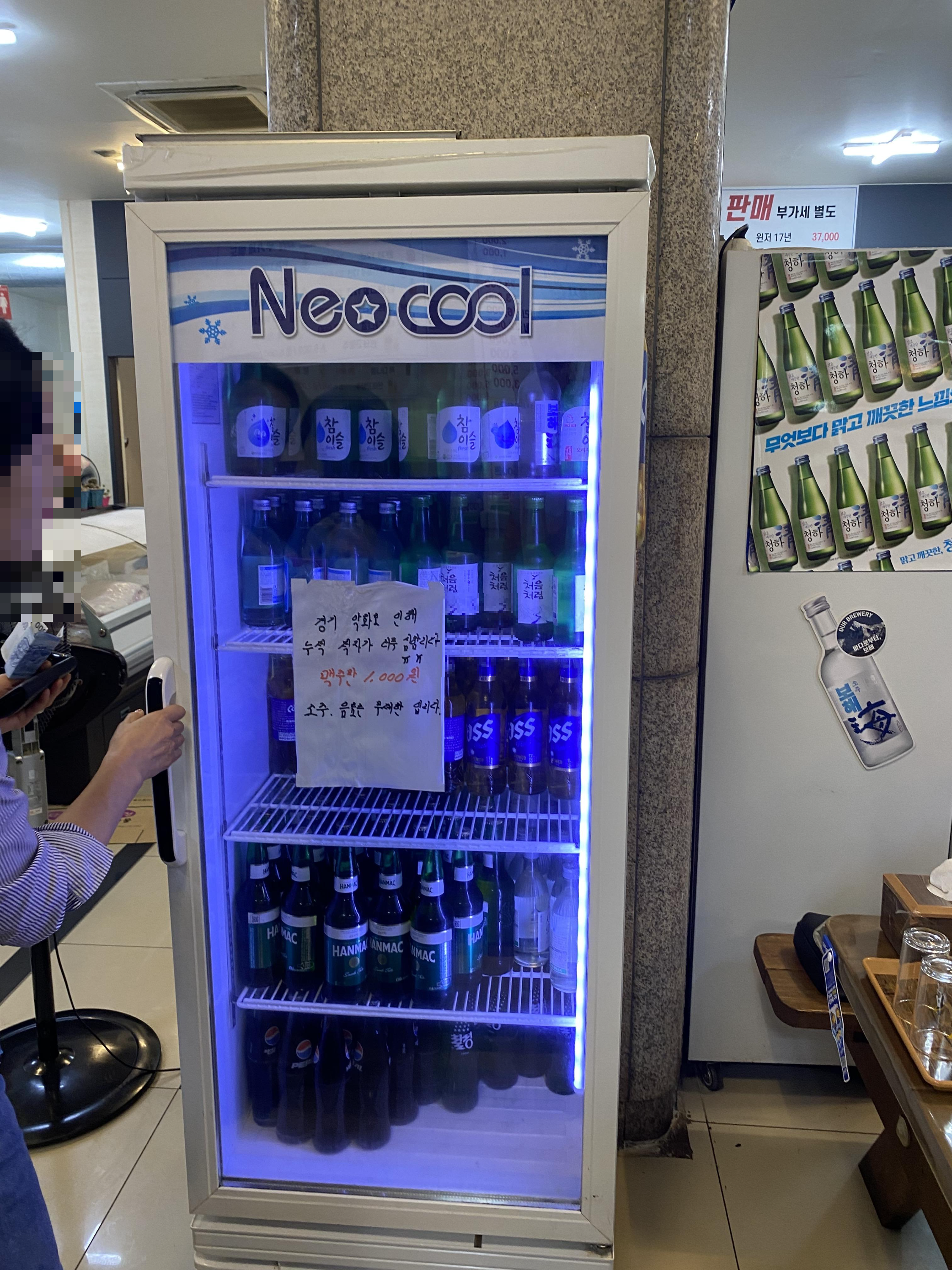 저는 처음에 제가 잘못 본 줄 알았습니다. 에이 설마 소주랑 음료수가 무료로 무제한으로 주는 곳이 어딨어? 요즘 같은 세상에! 이런 생각으로 눈을 씻고 다시 봤는데 소주냉장고에서 사람들이 그냥 꺼내가는 걸 보고 정말 놀랬습니다.