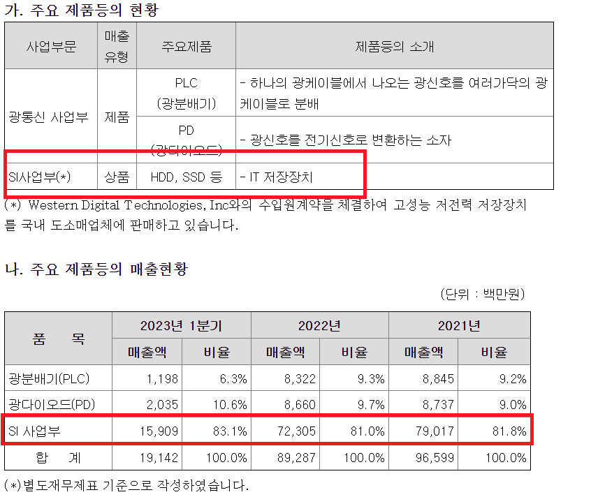 우리로의 사업보고서 중 주요 제품등의 현황을 보시면 SI사업부가 있습니다. SI사업부는 IT저장장치인 HDD, SSD 등의 상품을 매출로 나타내고 있습니다. 매출현황을 보시면 SI 사업부가 83.1%로 매출의 거의 대부분을 차지하고 있습니다. 즉, 우리로는 양자 관련 매출보다는 IT저장장치 판매기업으로 보시면 됩니다.