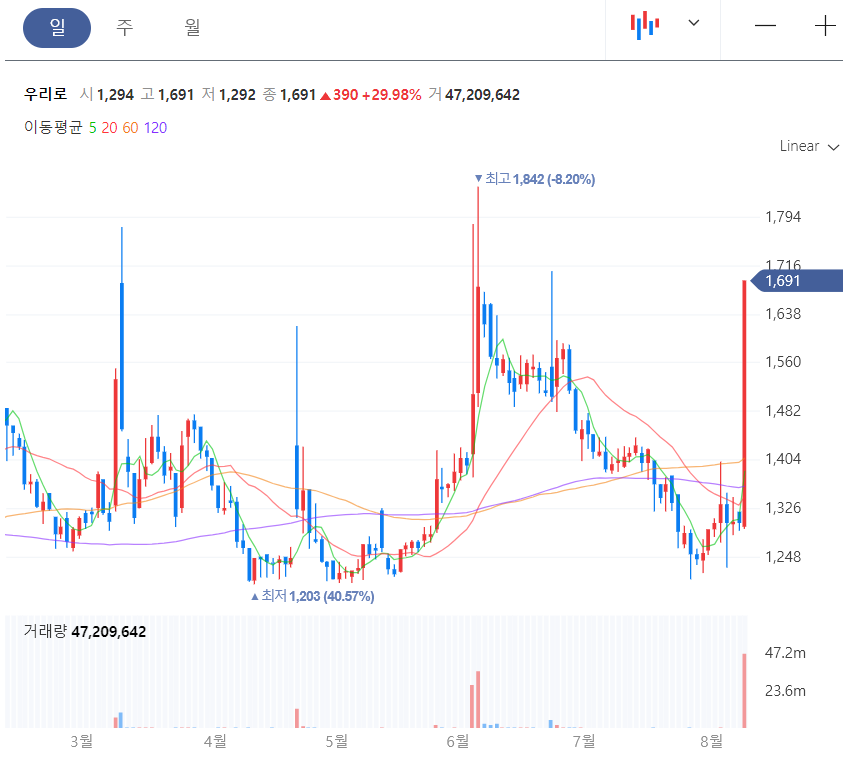 안녕하세요 벨카입니다. 우리로가 상한가로 마감하면서 관심을 받고 있습니다. 이와 관련된 포스팅을 하도록 하겠습니다.