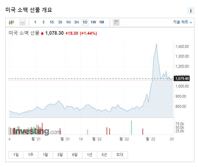 보입니다. 러시아와 우크라이나의 전쟁으로 인한 곡물 가격이 어떻게 될지 궁금하네요.