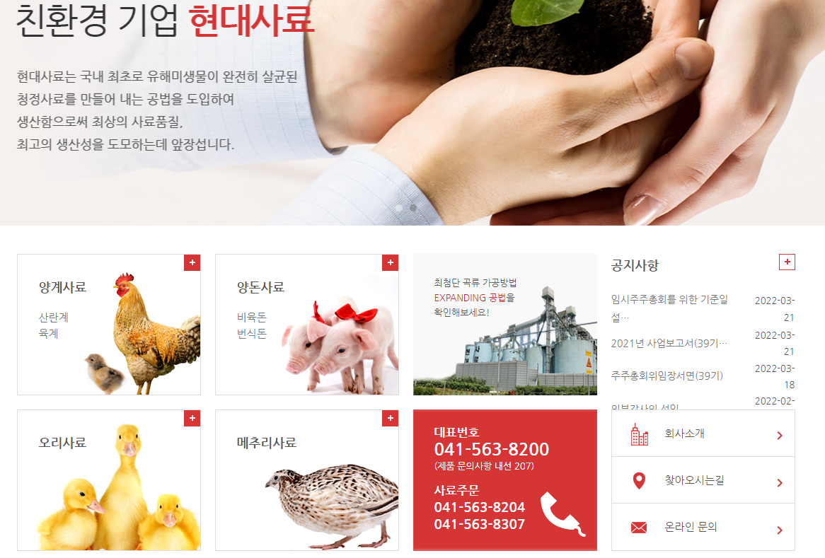 현대사료는 사료전문회사로서 현재 무공해 청정사료를 생산하고 있으며,