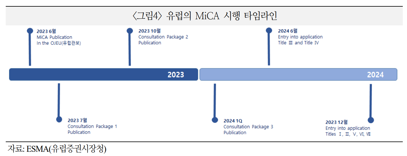 MiCA는 그동안 법적 지위가 없었던 가상자산 서비스를 '금융성 서비스'로 규정해서 투자자 보호를 강화할것이며, 향후 EU 내 가상자산서비스를 제공할 경우 당국의 인가가 필요할 것으로 보입니다.