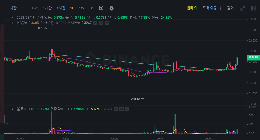 안녕하세요 벨카입니다. 하이파이(HIFI) 코인이 상승하고 있는 사유와 분석자료를 포스팅하도록 하겠습니다.