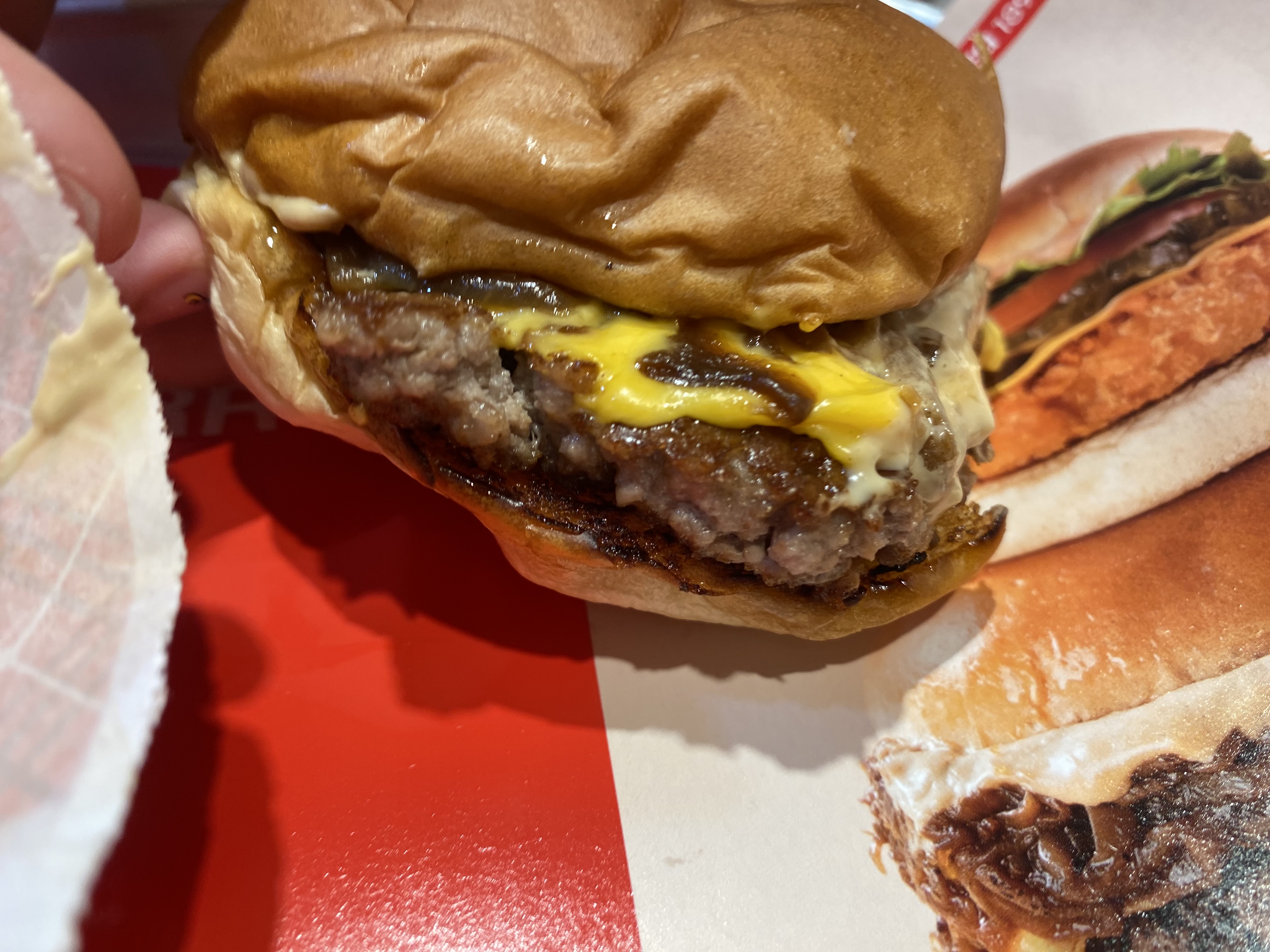 한입 베어 먹은 빅 클래식 치즈버거입니다. 버거리의 특징이 빵의 촉촉함과 두툼함 패티와 소스인 거 같습니다.
