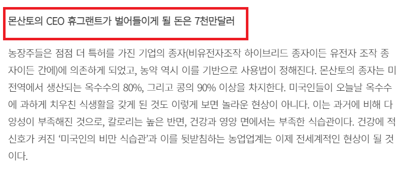 그렇게 몬산토의 CEO는 원화로 약 850억 원을 벌어들이면서 천문학적 자산을 가지게 되었습니다.