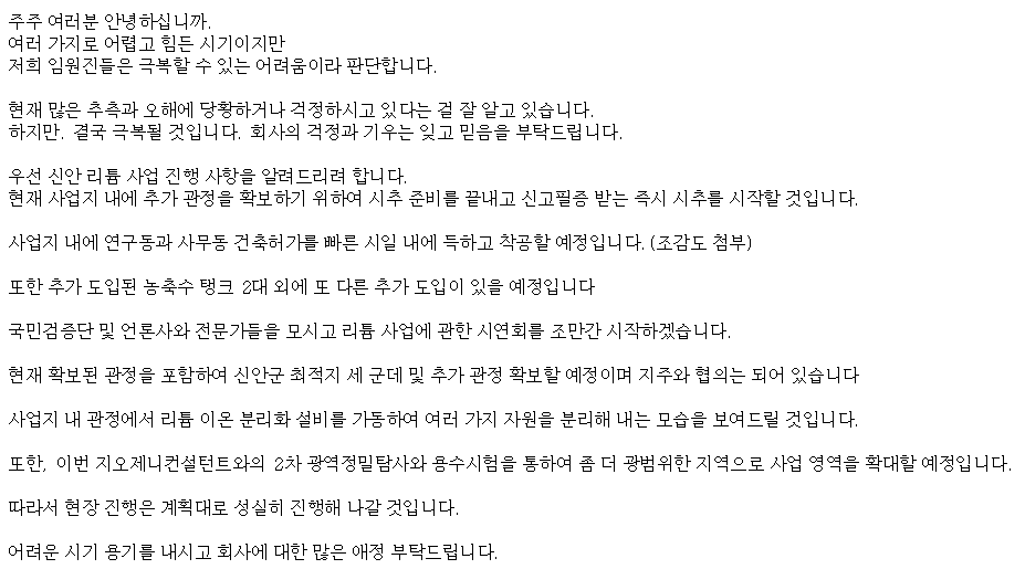 국내 최초로 염호 리튬 추출 및 리튬 가공 및 유통사업을 추진하고 있습니다.
