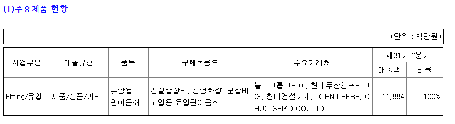 하지만 매출 비중 100%는 유압용 관이음쇠