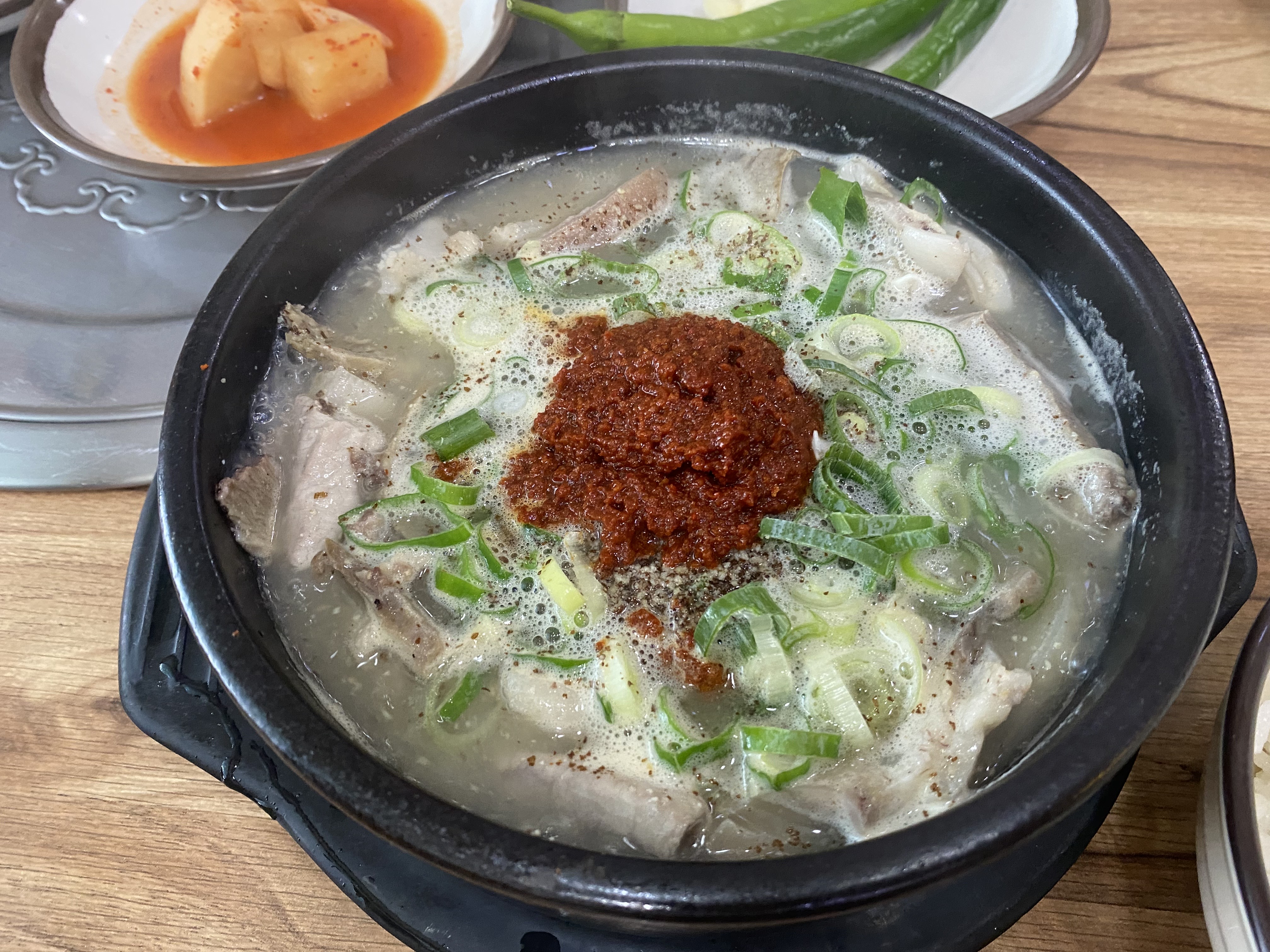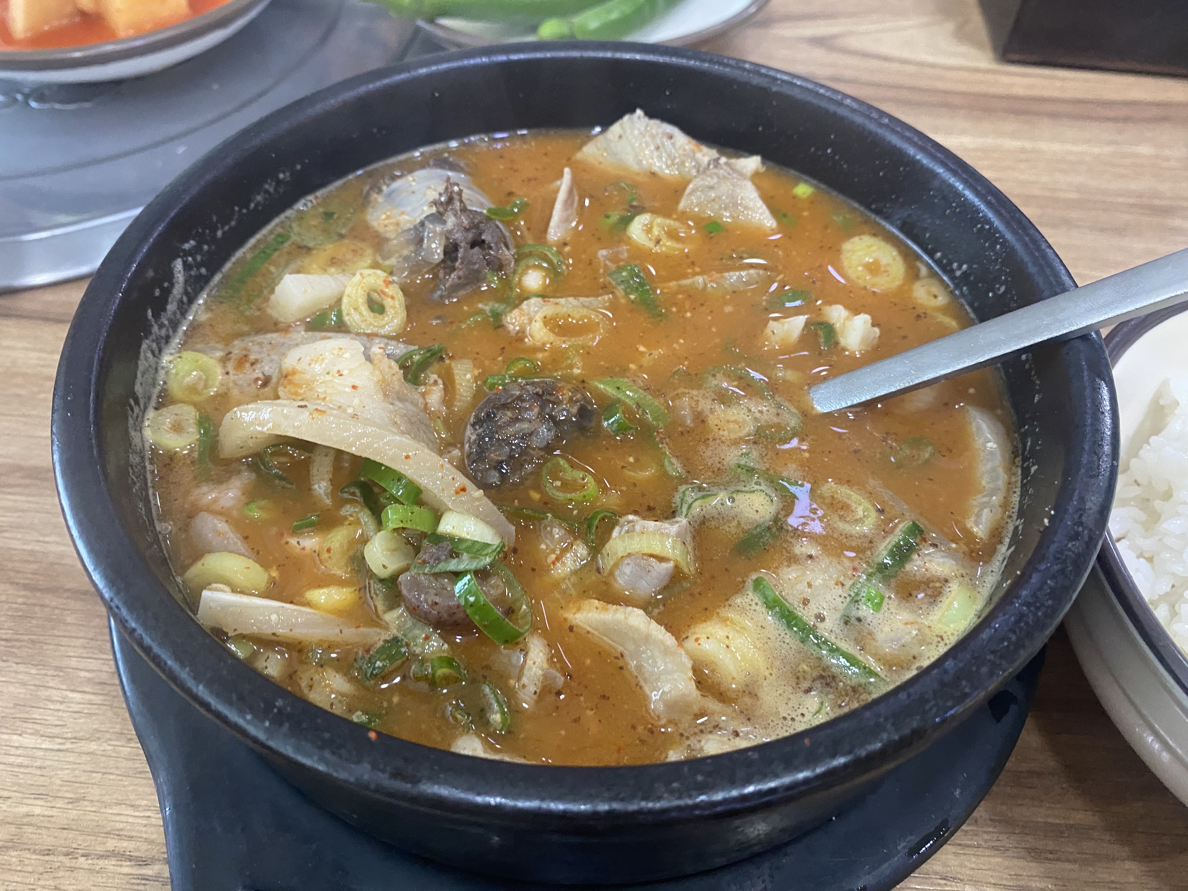 진한 국물 색깔이 보이시나요? 게다가 많은 고기가 들어가 있어서 뚝배기가 넘칠 거 같지만 안 넘치더라고요. 술 먹고 다음날 먹으면 정말 한 그릇 뚝딱 먹을 수 있을 정도로 해장도 되고 개운하게 먹은 느낌입니다.