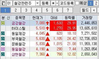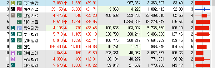 철강주들의 상승을 보여주고 있는 상황입니다.