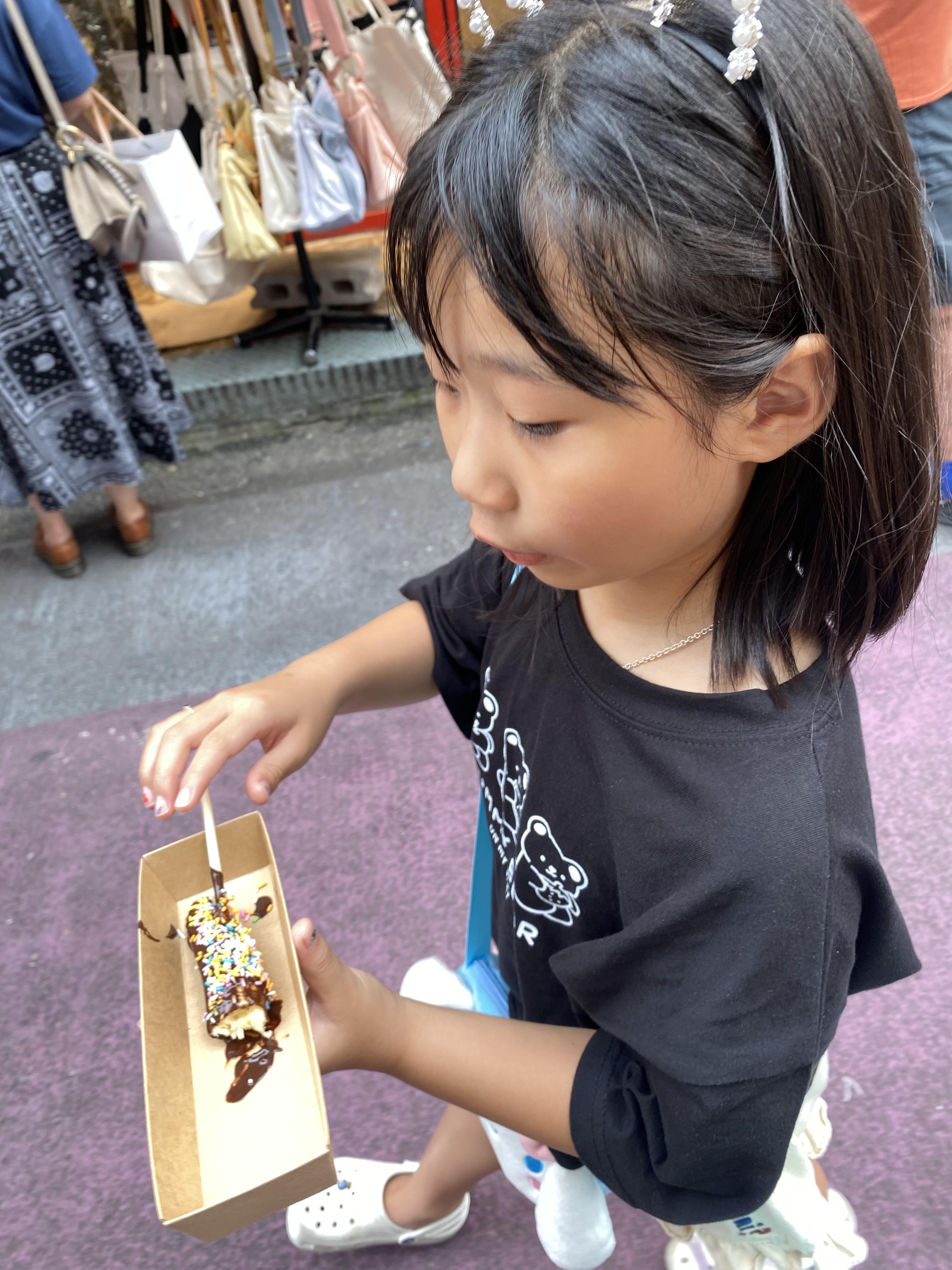 쇼핑도 하고 길거리를 돌아다니다 보니 배가 출출해서 뭘 먹을지 계속 고민하다가 딸이 햄버거 먹고 싶다고 해서 홍대에 있는 버거리에서 햄버거를 맛있게 먹었습니다. 그래도 배가 안 찼는지 예전부터 먹고 싶다던 바나나 초코까지 먹으면서 배를 채웠습니다.