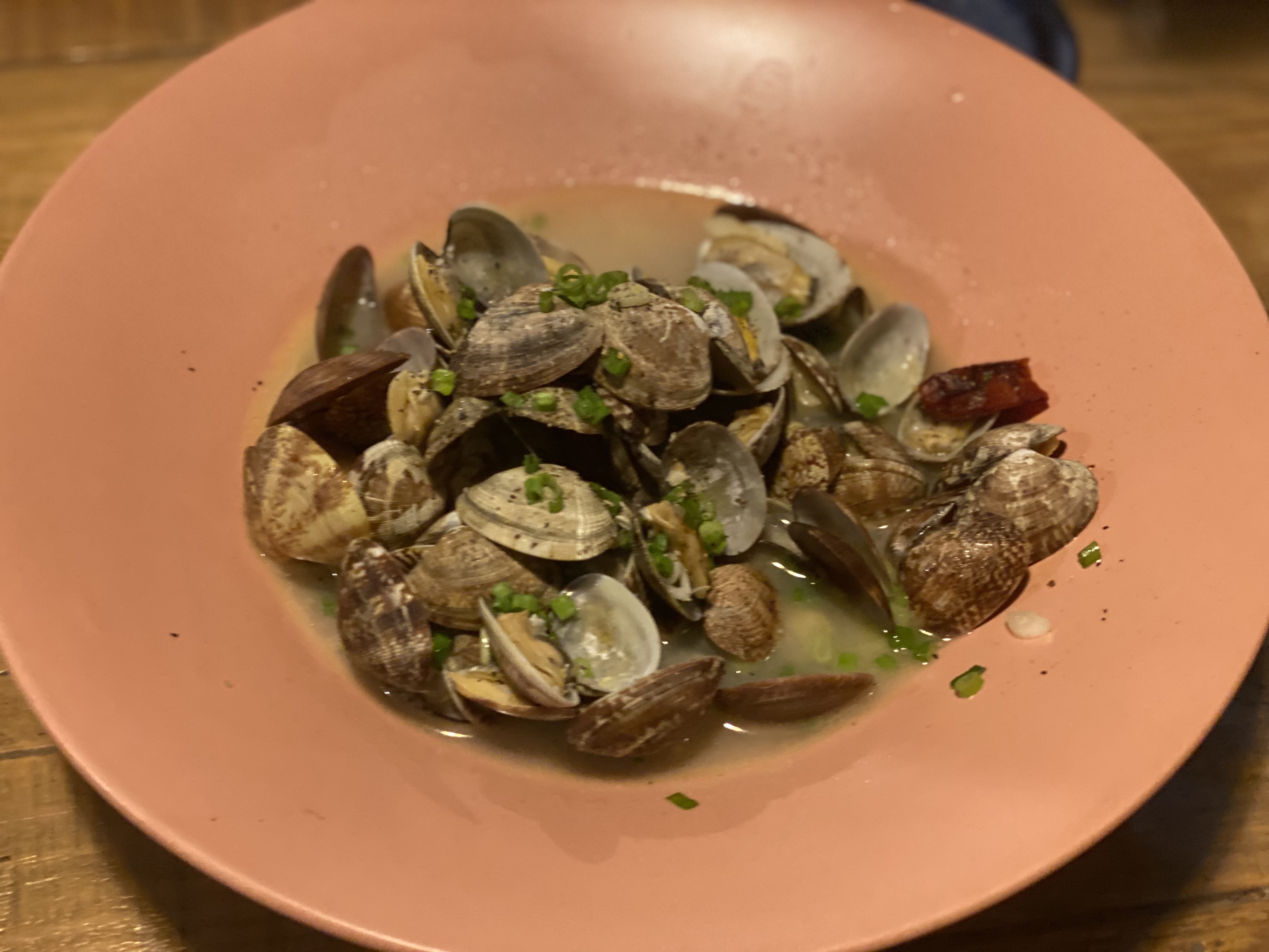 바지락 술찜은 버터 향과 적당한 매콤함이 더해져서 얼큰한 맛이 납니다. 특히 바지락은 쫄깃하고 신선해서 맛있습니다. 그렇다고 엄청 맛있다라는 느낌은 아니고 '그냥 맛있다'라는 정도의 맛입니다.