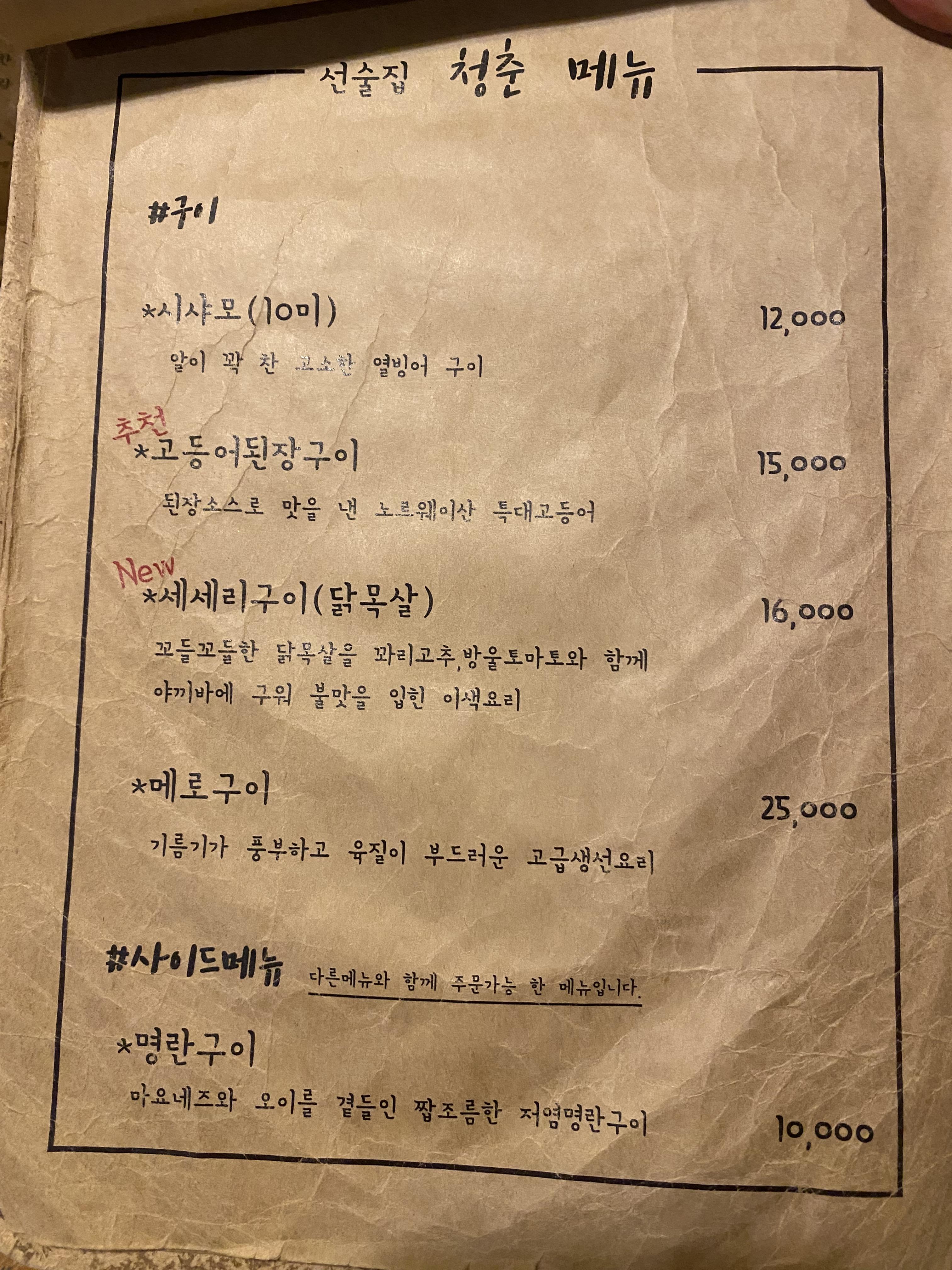 부평구청에 위치한 안주 맛집 선술집 청춘 포스팅이었습니다.