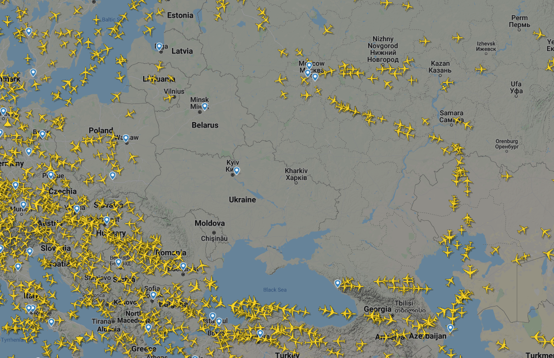 러시아 우크라이나 위로 비행기가 안 보인다.
