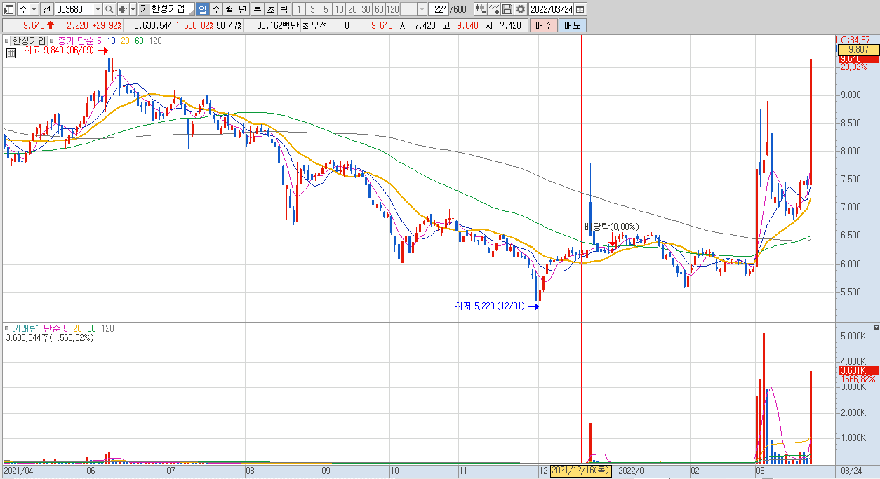 금일 상한가에 도달한 한성기업은 수산물 관련주로서 관심을 받은 종목입니다.