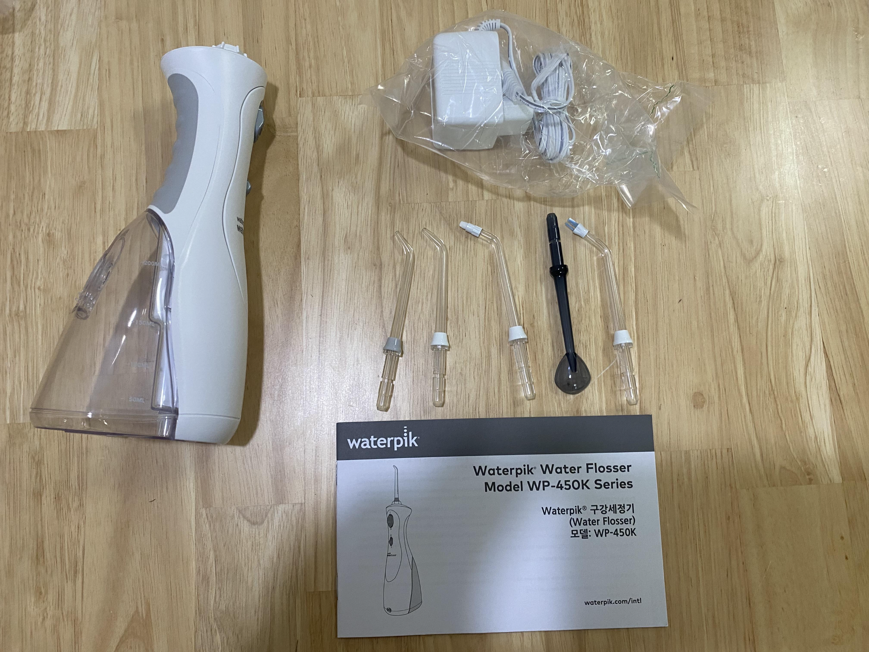 제가 워터픽 WP-450K를 구매하게 된 이유는 여러가지 이유가 있습니다. 일단 무선으로 사용이 가능하며, 컴팩트해서 실용성이 높은 제품 휴대용 제품이기 때문입니다. 실리콘 손잡이와 한 손으로 조절이 가능하기 때문에 구강관리를 하는데 용이합니다.