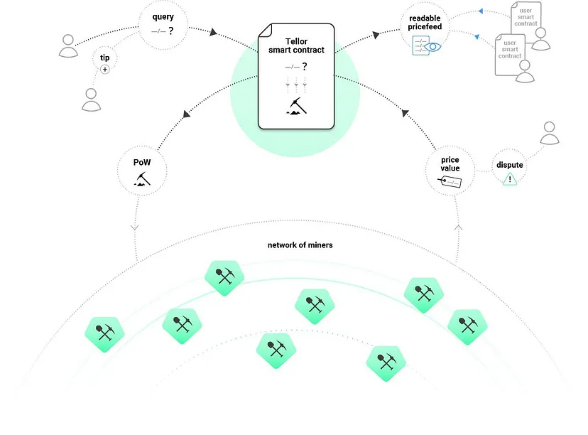 오라클은 TRB 인센티브를 놓고 경쟁하는 데이터 리포터와 함께 요청 및 검증, 무단으로 체인에 넣을 수 있는 데이터를 제공하며, 데이터 리포터는 광범위한 DeFi 애플리케이션을 위해서 정보를 온체인으로 가져옵니다.