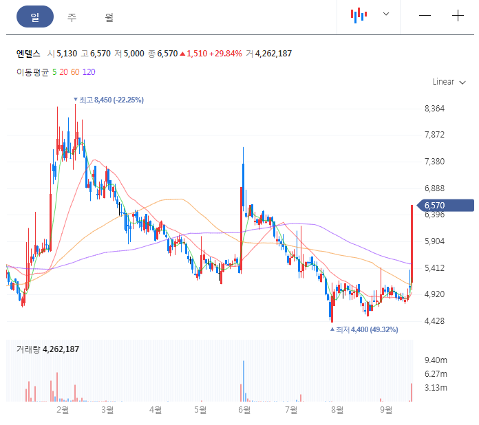 엔텔스 일봉차트를 보시면 아직 저항대가 있기 때문에 전고점에서 저항을 뚫기는 힘들 거 같습니다. 그래도 스타링크 관련 테마로 엮인다면 가장 관심 받을 주식으로 알려지기 때문에 추후에 스타링크가 활성화된다면 관심을 받을 수 있을 거 같습니다.