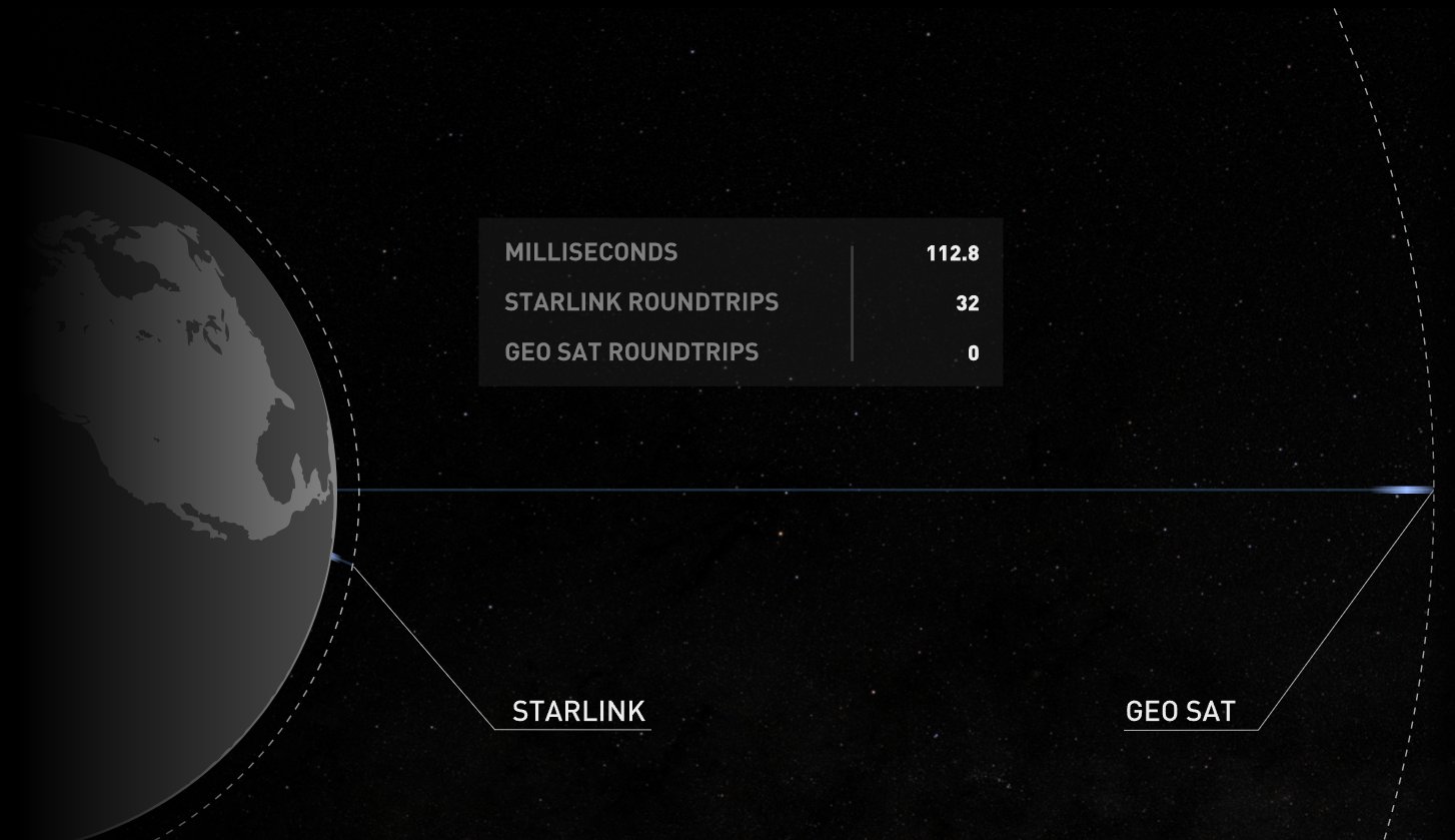 하지만 스타링크는 약 550km로 지구에서 훨씬 더 가까운 행성을 공전하고 지구 전체를 덮고 있는 수천 개의 위성으로 구성된 별자리입니다. 스타링크 위성은 낮은 궤도에 있기 때문에 대시 시간은 600ms 이상인 약 25ms로 훨씬 낮습니다.