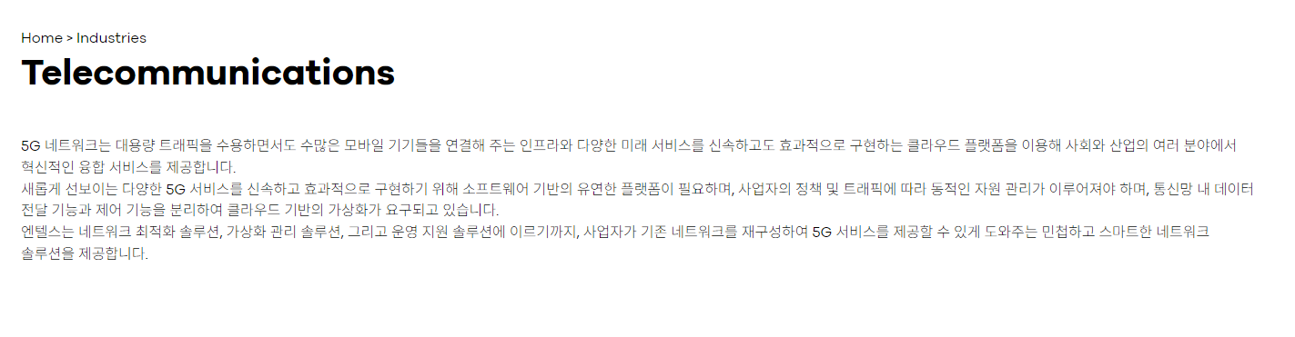 엔텔스는 통신, 방송, 인터넷, 그리고 사물인터넷 분야에서 다양한 서비스를 제공하는 기업입니다. 주요 사업으로는 이러한 서비스 제공 업체가 고객에게 서비스를 제공하기 위해 필요한 다양한 작업을 지원하는 소프트웨어 솔루션, 플랫폼 서비스, 서비스 운영, 시스템 설계 및 통합을 제공합니다.