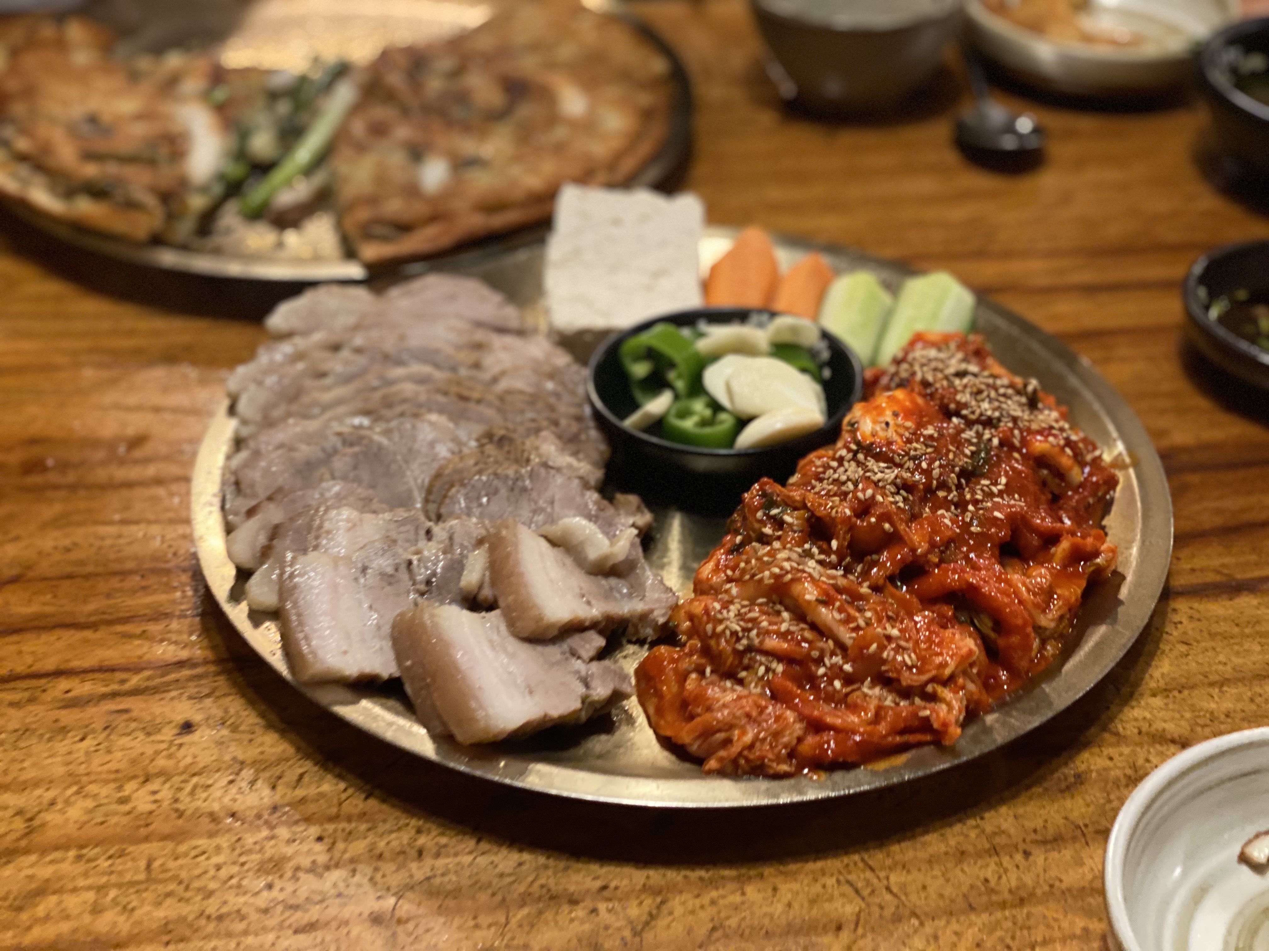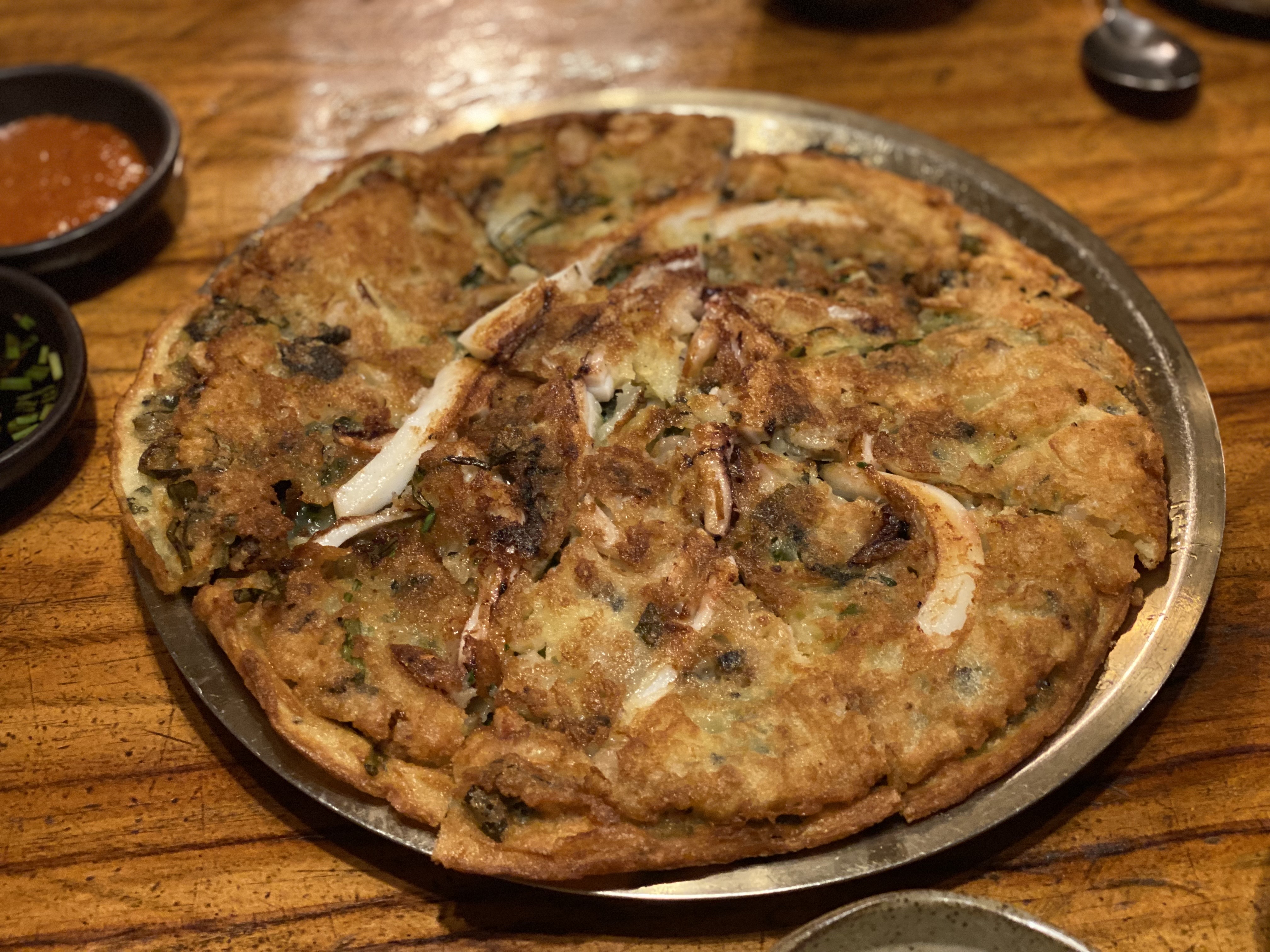 음식: 해물파전은 바삭한 게 맛있었지만, 내용물이 약간 부족했음 / 보쌈은 김치가 정말 맛있고 앞다리살이 더 많았으면 좋겠음