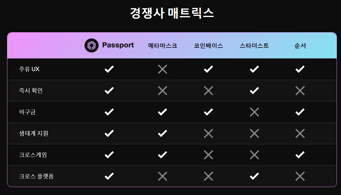 1. 간편한 로그인과 지갑 자동 생성을 지원하는 비수탁 지갑 및 인증 솔루션인 Passport를 통해서 쉬운 Web3 게임 온보딩을 지원하고 있습니다.