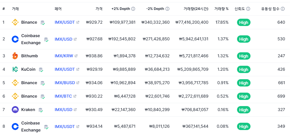 이뮤터블엑스(IMX) 상장거래소