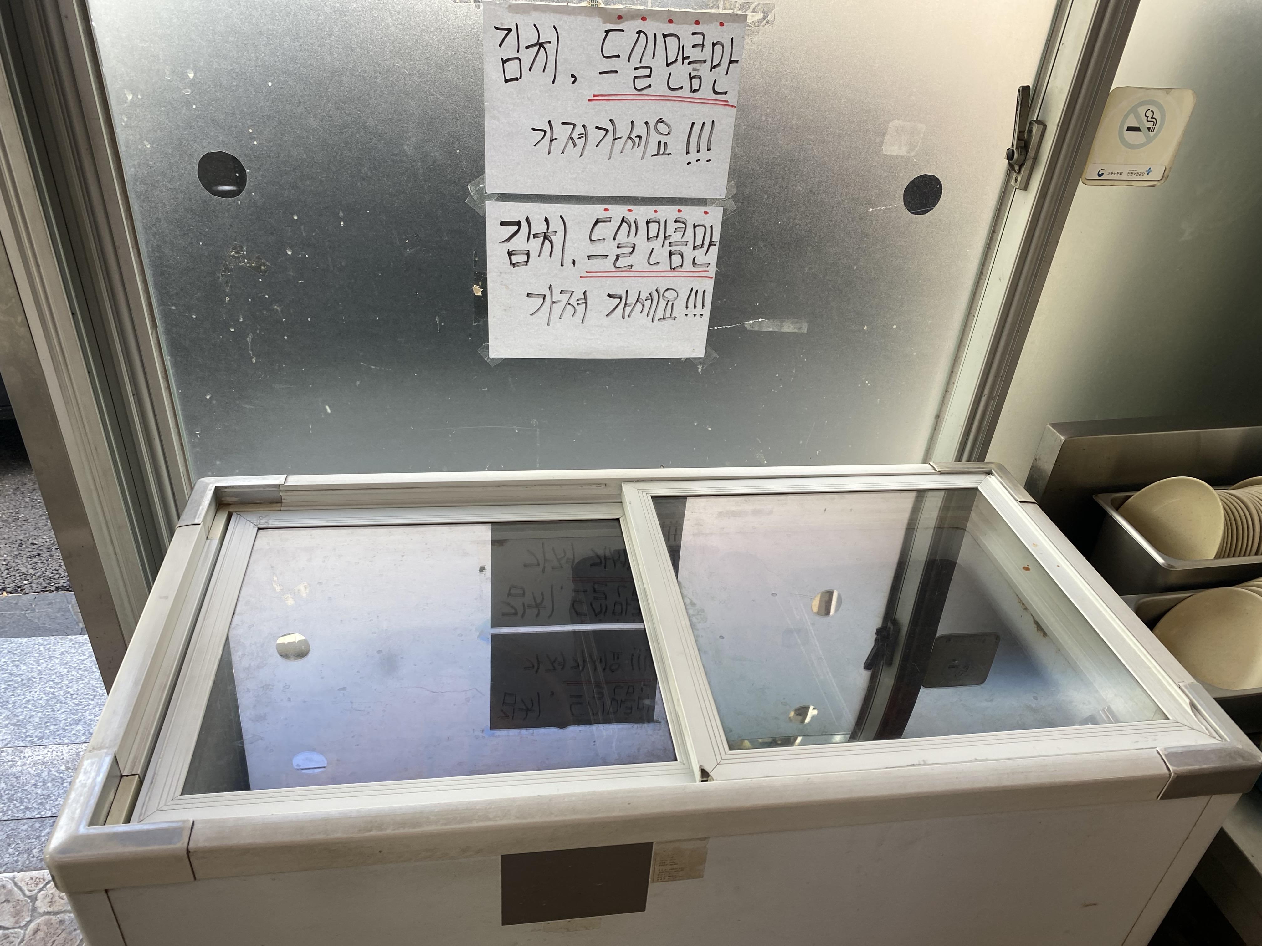 셀프바에는 열무김치, 배추김치, 양념단무지가 있습니다.