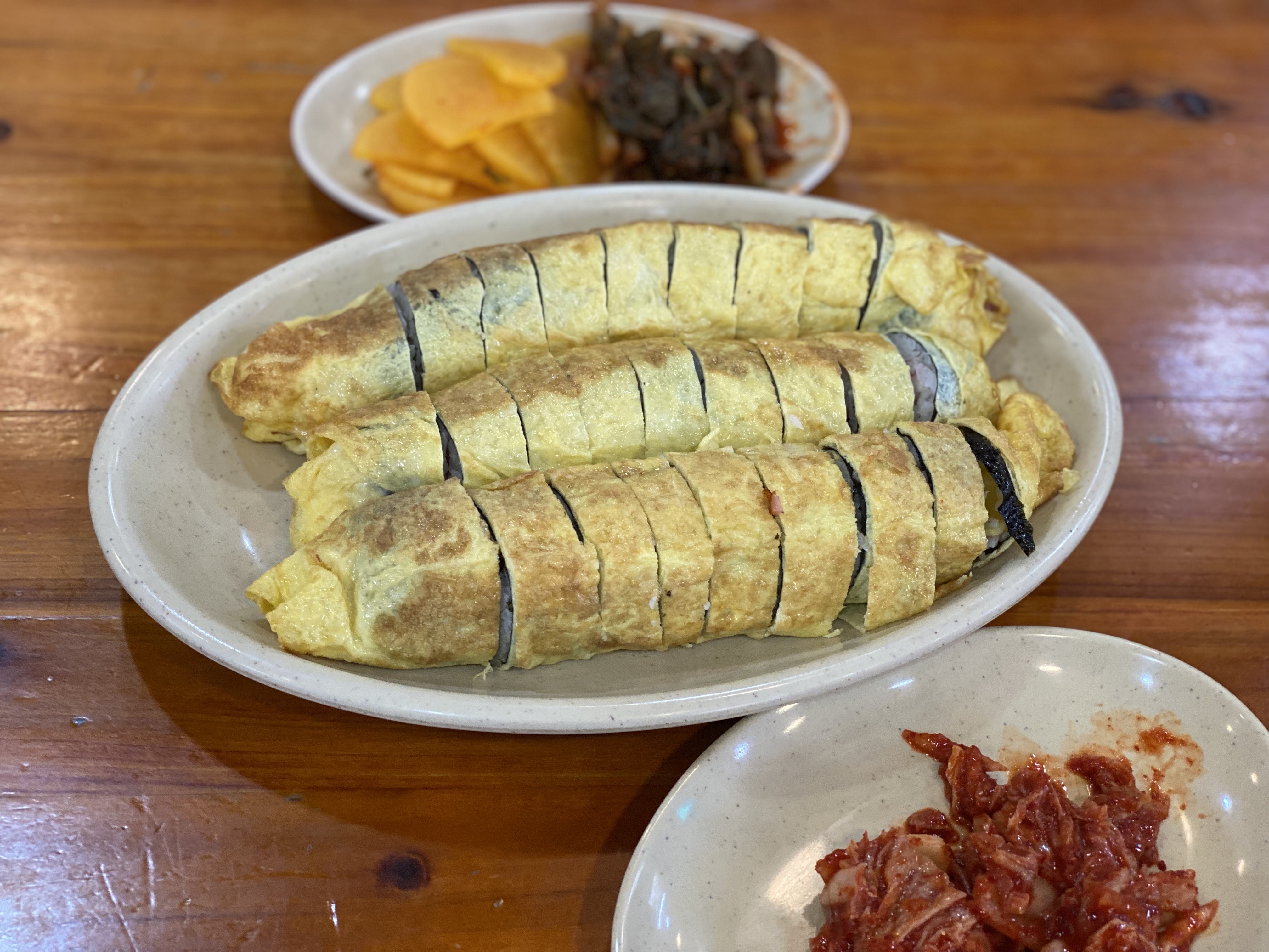 계란말이김밥은 비주얼부터 참 맛있어 보입니다. 김밥 속은 계란, 맛살, 시금치, 단무지밖에 안 들어가 있는데 참 맛있었습니다. 간이 잘 배어서 그런지 정말 맛있었습니다. 사실 초지는 계란말이김밥으로도 유명한 곳이기도 합니다.