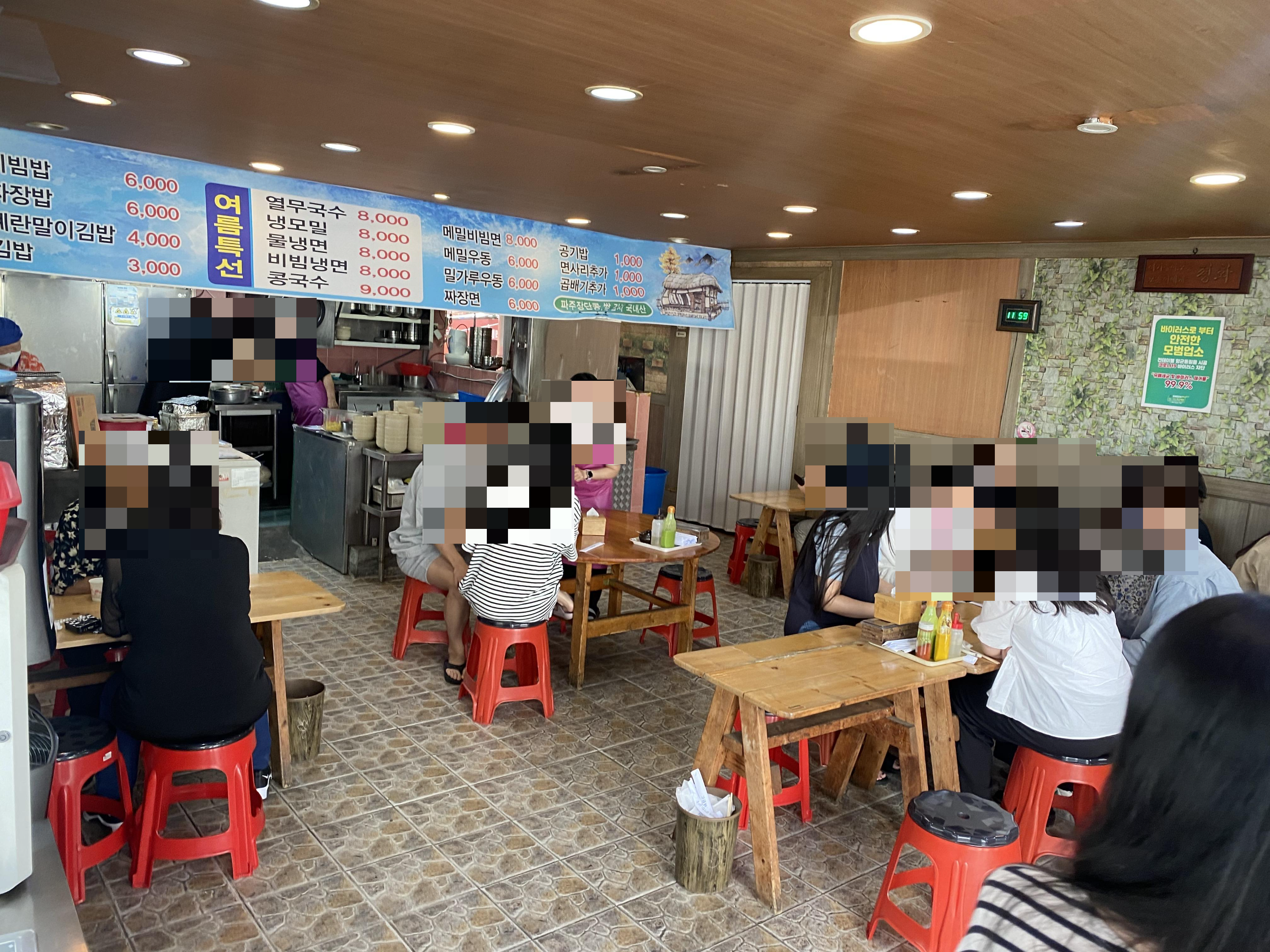 메뉴는 여름 특선으로 열무국수, 냉모밀, 물냉면, 비빔냉면, 콩국수가 있습니다. 그리고 메밀비빔면, 메밀우동, 밀가루우동, 짜장면 등이 있습니다.