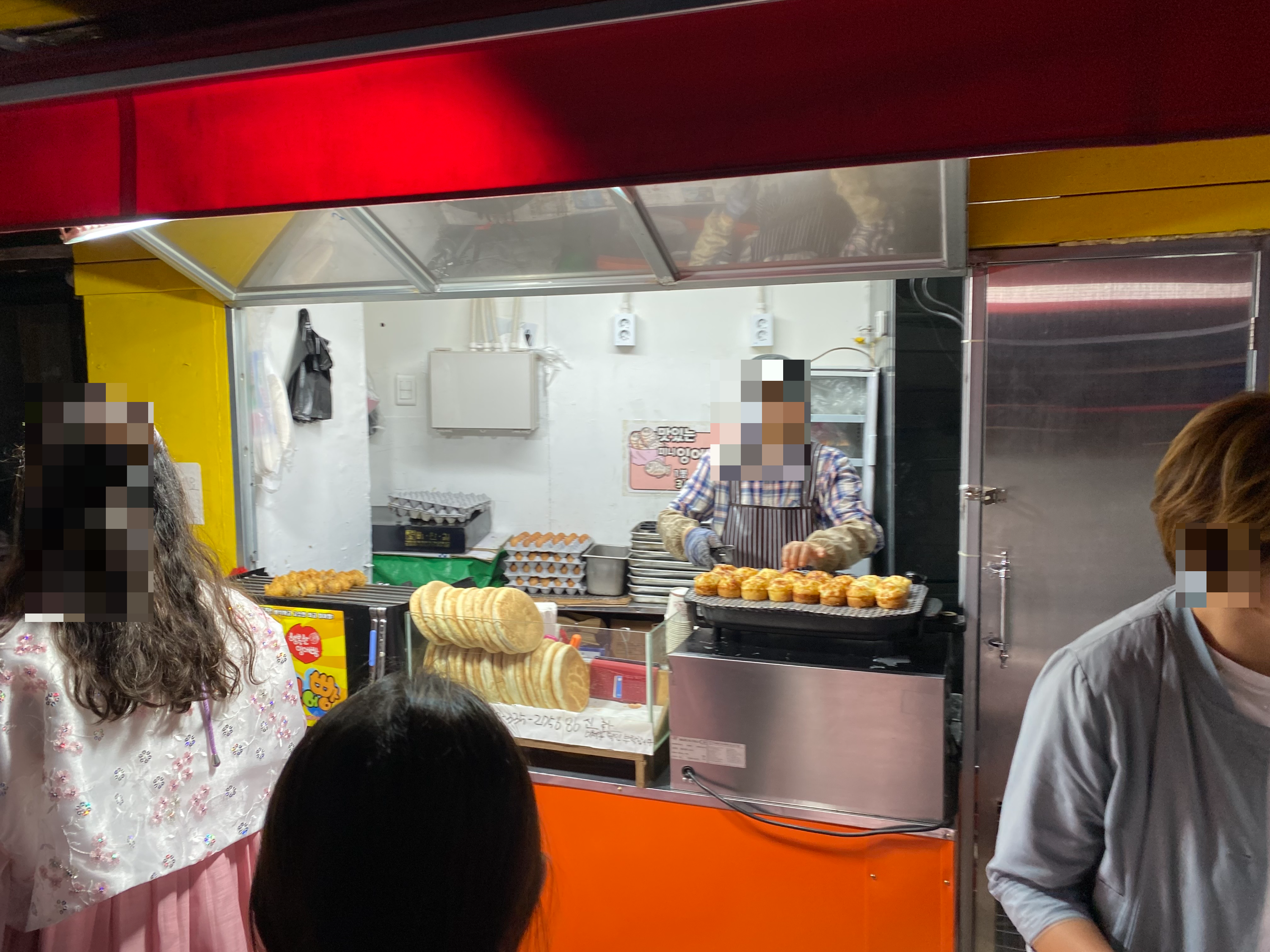 경복궁안에는 음식을 먹을 수는 없고, 주변에 먹거리와 맛집이 많이 있습니다. 한복 대여집도 많아서 사람들이 정말 북적되는 곳입니다. 특히 길거리에는 계란빵도 판매하고 있고 통인시장도 있어서 맛집도 많이 있습니다. 저와 딸은 간단하게 먹기 위해서 계란빵을 먹었습니다.