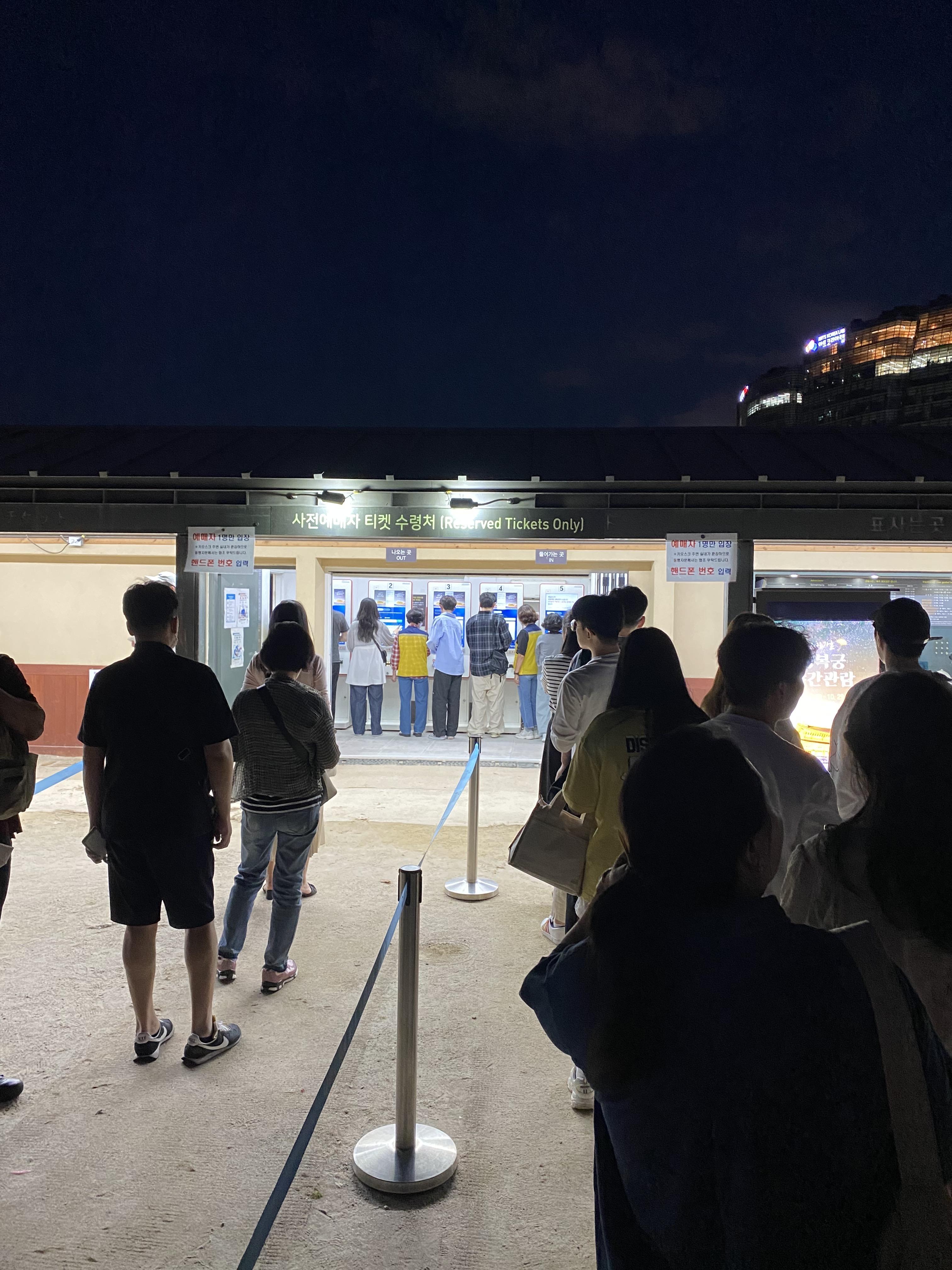 경복궁을 입장하시면 티켓 현장 수령처가 있습니다. 참고로 티켓을 4개 예매했으면 한 장 두 장 따로 티켓을 수령할 수 있는 게 아니고 4명이 동시에 입장할 수 있는 티켓 1장이 출력됩니다.