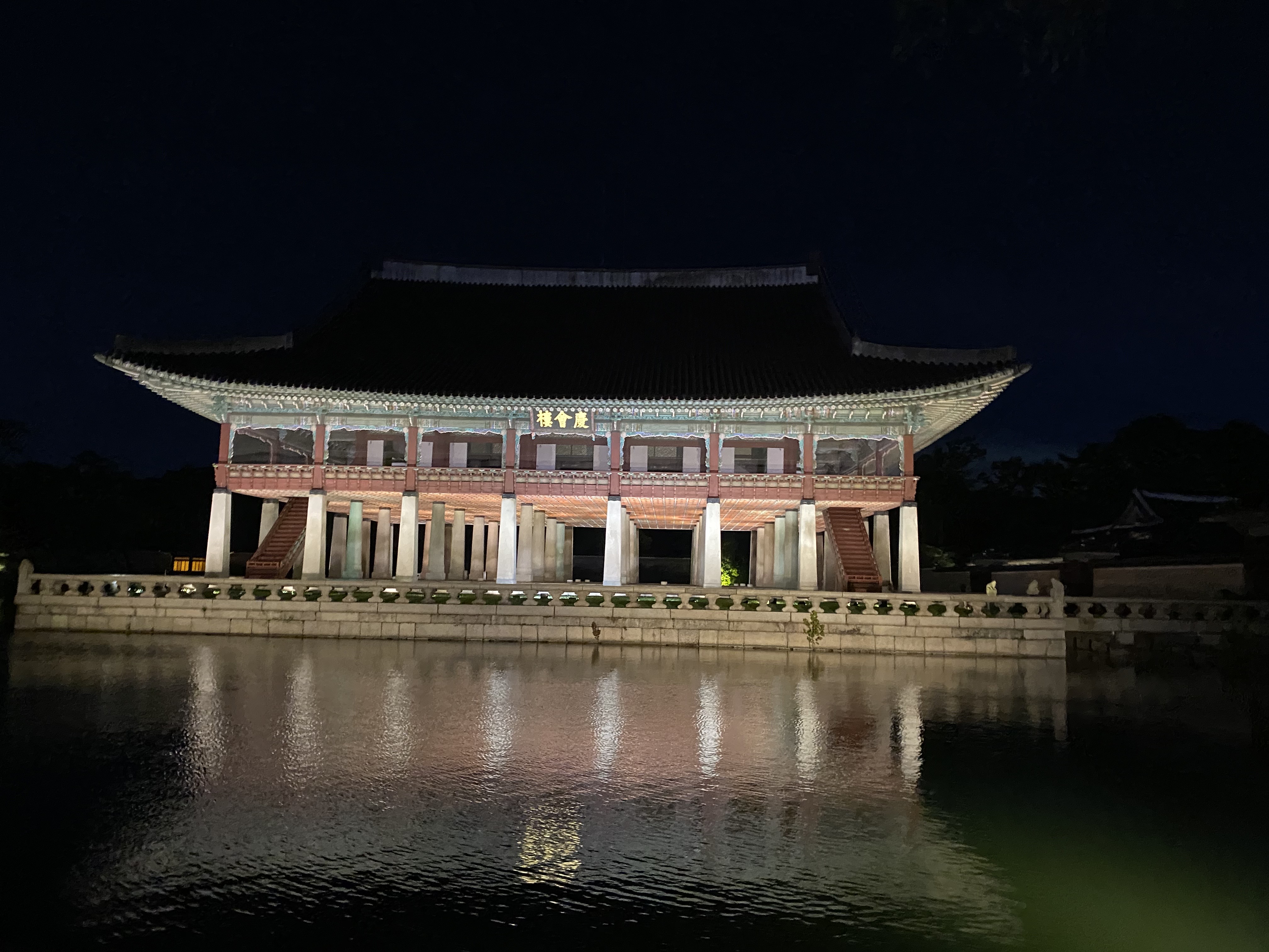 근정전 서북쪽에 위치한 누각으로 국보로 지정되어 있는 곳입니다. 경화루는 나라나 왕실에 경사가 있거나 사신이 왔을 때 연회를 베푸는 장소로 사용되었돈 곳입니다. 연못 위에 있어서 야간조명에 반사되어 너무 아름다운 모습을 하고 있습니다.