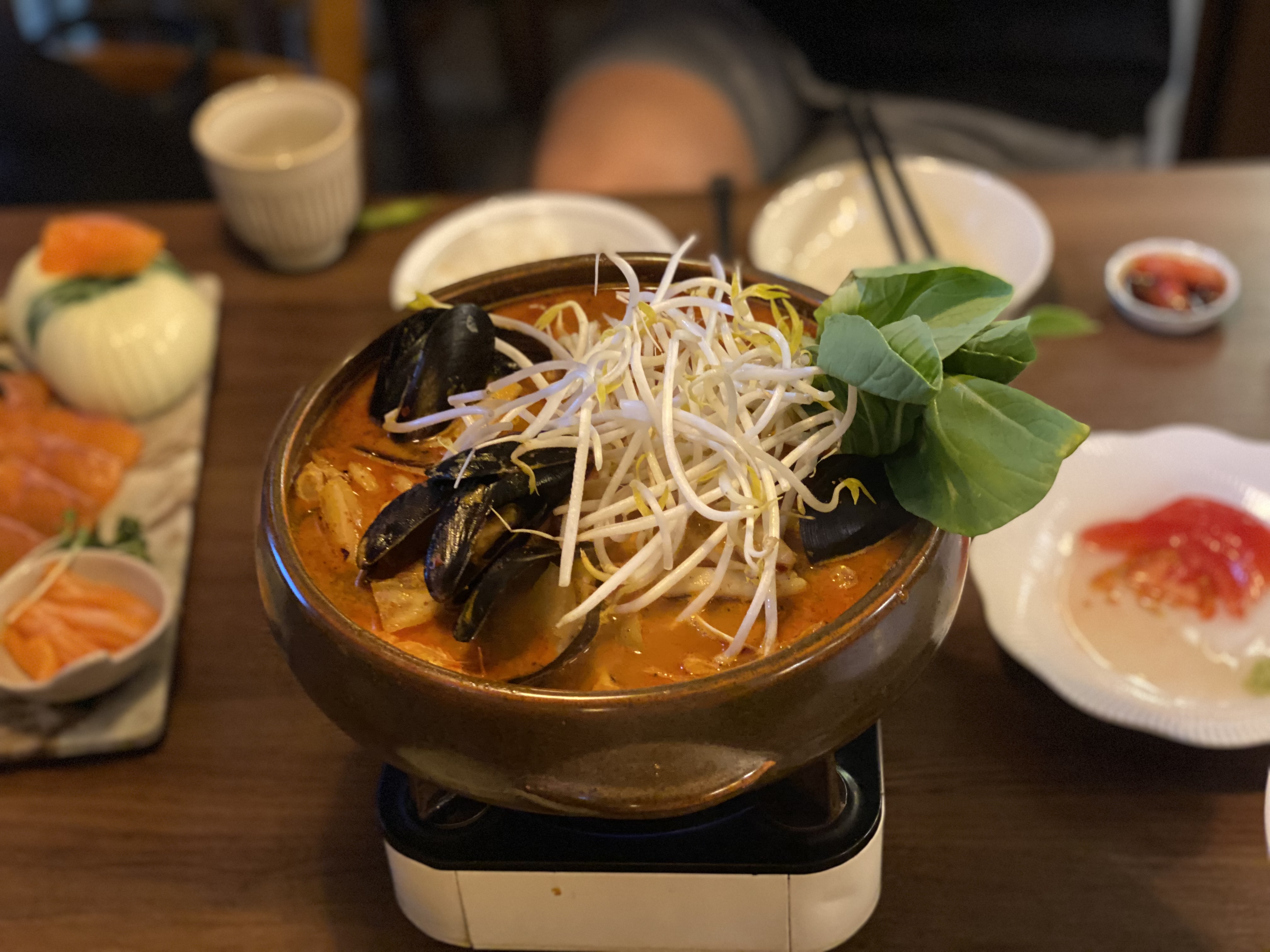 메뉴는 사시미, 탕, 나베, 요리, 사이드, 꼬치 등으로 구성되어 있습니다. 이중 가장 대표적인 메뉴는 연어사시미와 꼬치이지만 국물이 먹고 싶어서 짬뽕나베를 주문했습니다. 아 예전에 생순살치킨 가라야게도 먹어봤는데 정말 맛있었습니다.