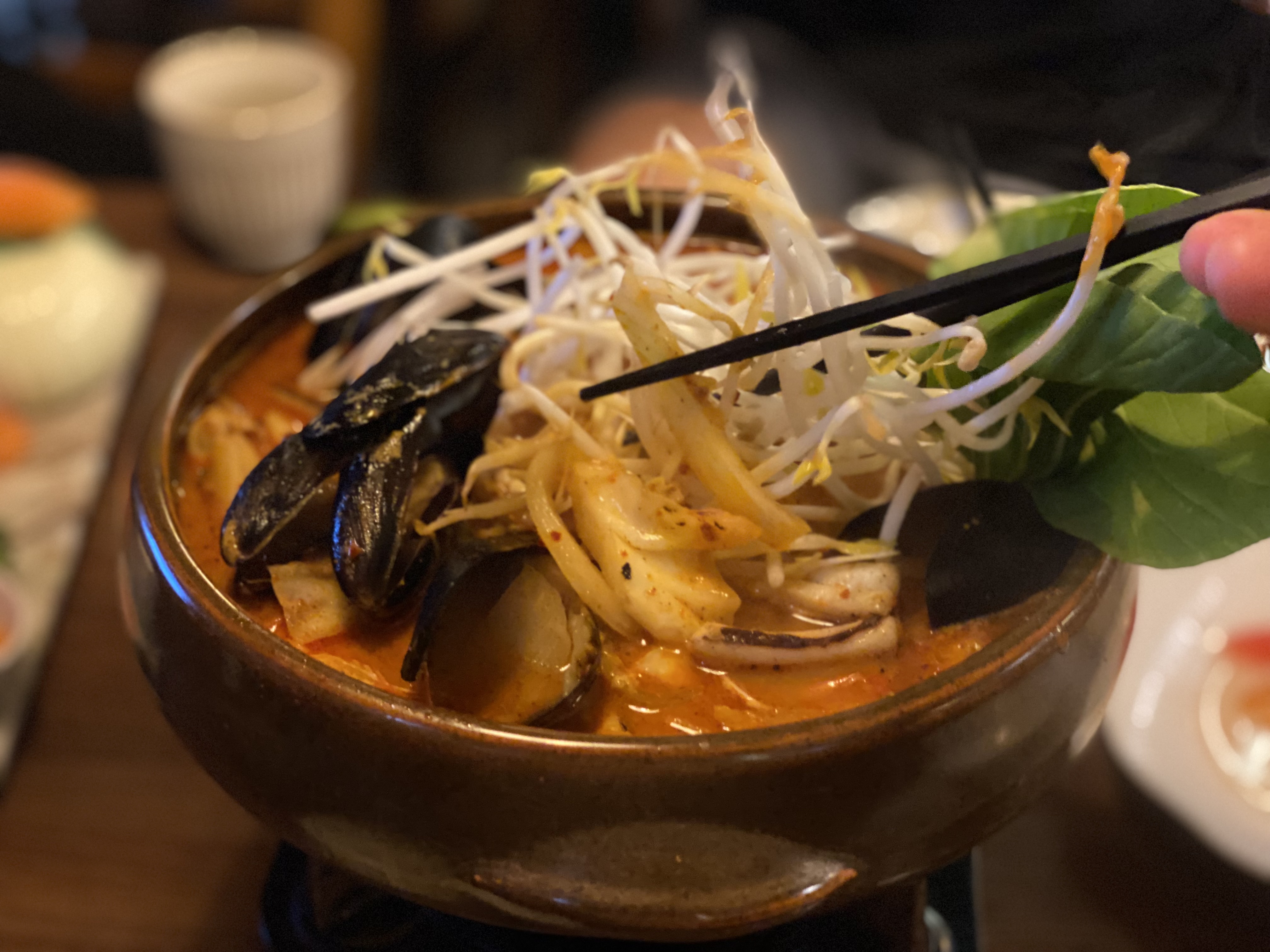 나가사끼짬뽕은 기본맛과 매운맛이 있었는데 얼큰한 국물이 먹고 싶어서 매운맛으로 주문했습니다. 구성은 일반 나가사끼짬뽕과 비슷했고, 술먹고 먹으면 딱 좋은 안주였습니다. 숙주가 많이 들어가 있고, 해물이 많이 들어가 있어서 얼큰한 맛을 달래줍니다.