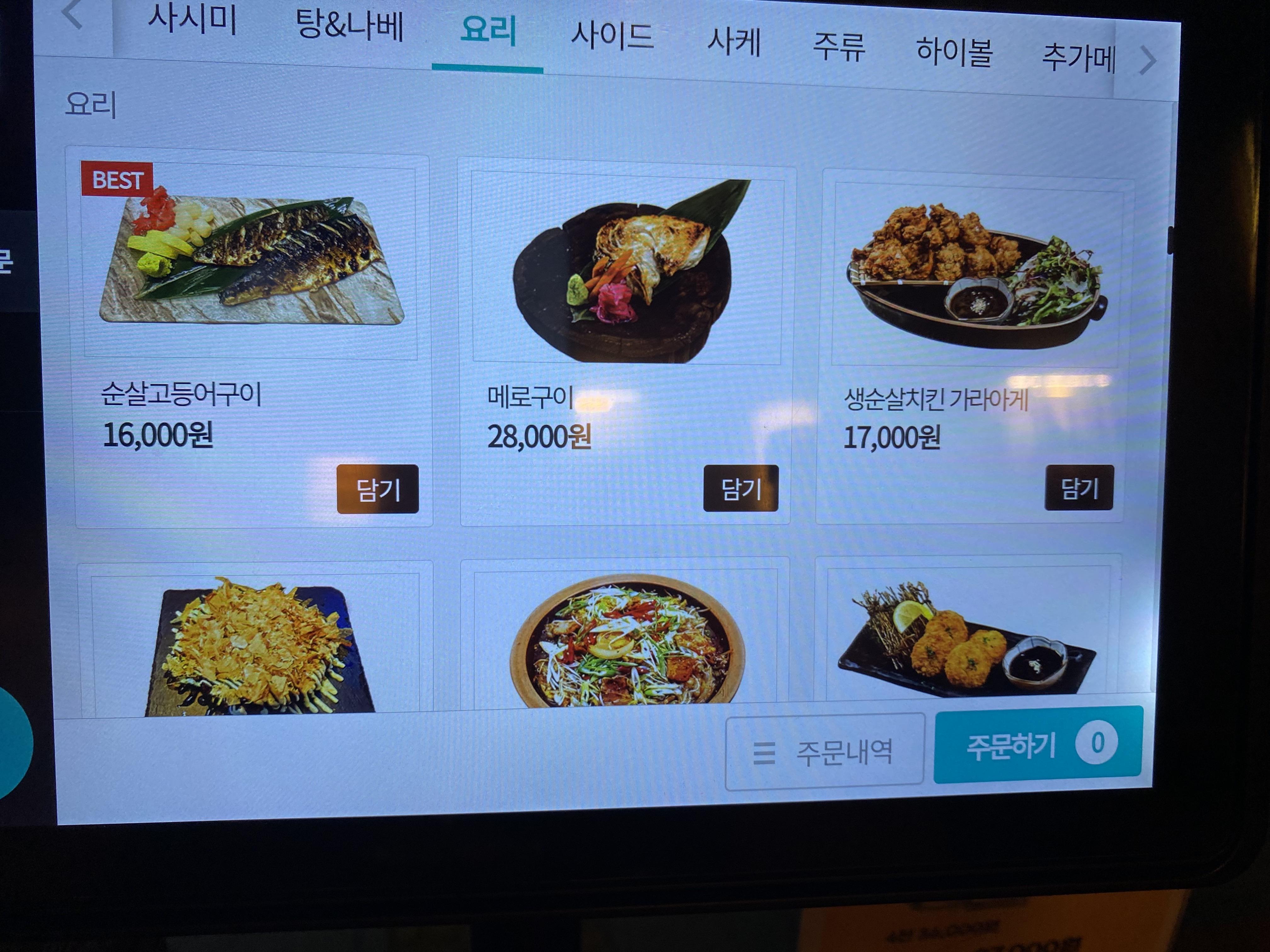 이자카야 느낌에 작은 술집이여서 혼술이 가능할 거 같은데 혼술 하기에는 매장이 좁아서 부담스러운 곳입니다. 둘이 오거나 간단하게 먹기 좋은 곳이기도 하지만 1차로도 나쁘지 않을 거 같더라구요. 왜냐하면 메인 메뉴인 사시미와 탕류가 있어서 든든하게 먹을 수 있습니다.