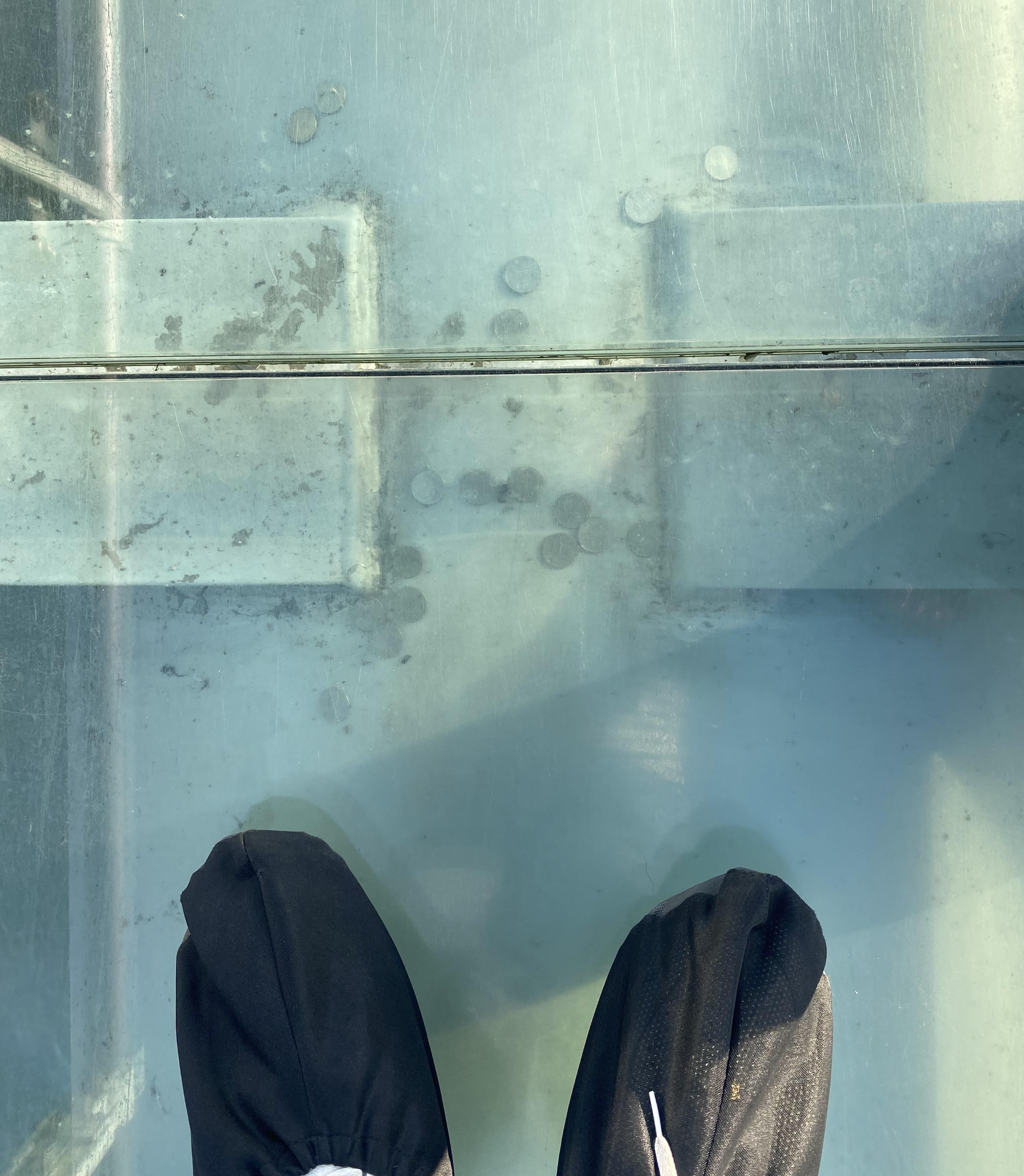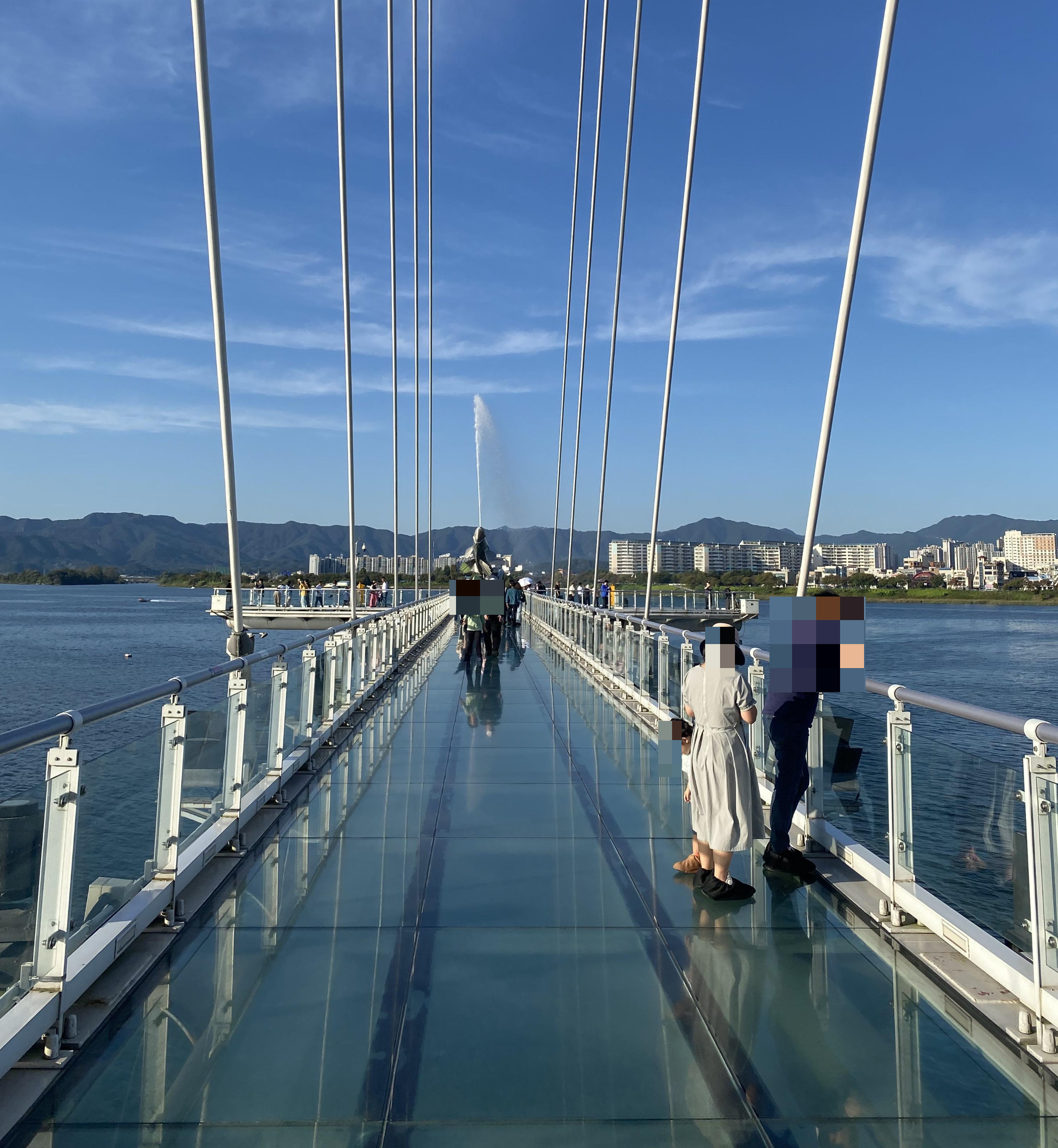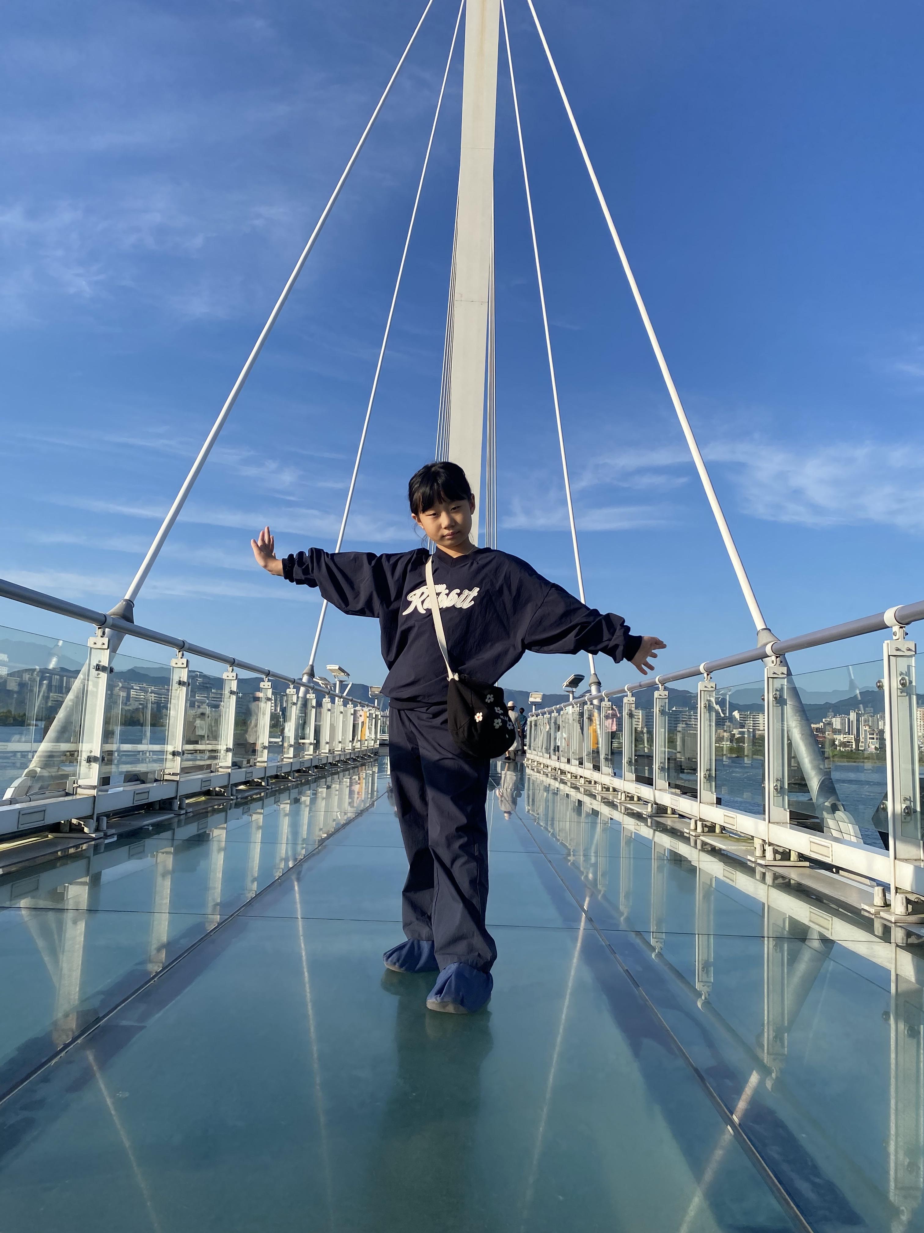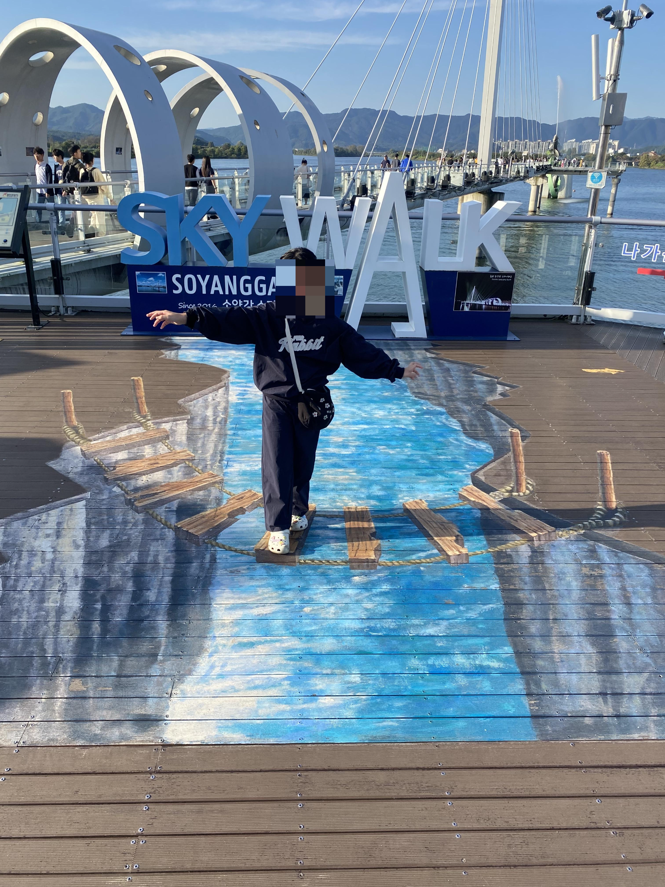 스카이워크를 직역하면 하늘을 걷는다는 뜻으로 투명 유리 위를 걷는 곳입니다. 유리가 완전히 투명하지 않고 약간 뿌옇게 되어 있어서 밑에 소양강이 완전 자세히 보이지는 않아서 그렇게 무섭지는 않습니다. 딸과 함께 즐겁게 걸으면서 기념사진도 많이 찍었습니다.
