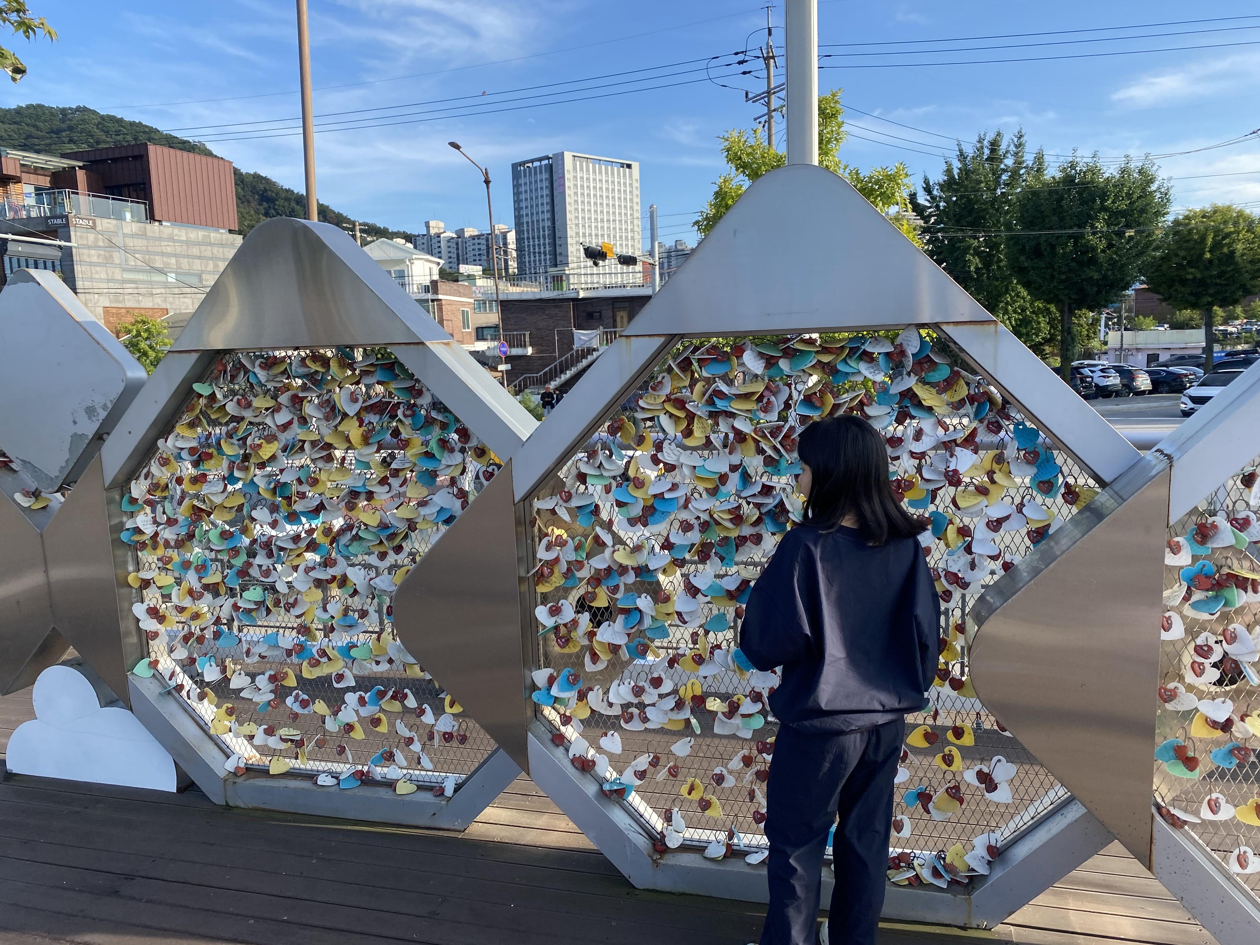 자세히 보면 유리 밑에 동전들이 쌓여있는 걸 볼 수 있습니다. 유리밑에 동전을 넣고 소원을 비는 건가??