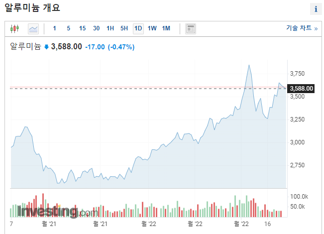 러시아 우크라이나 전쟁이 장기화되면서 알루미늄 가격이 계속 상승을 하고 있어서