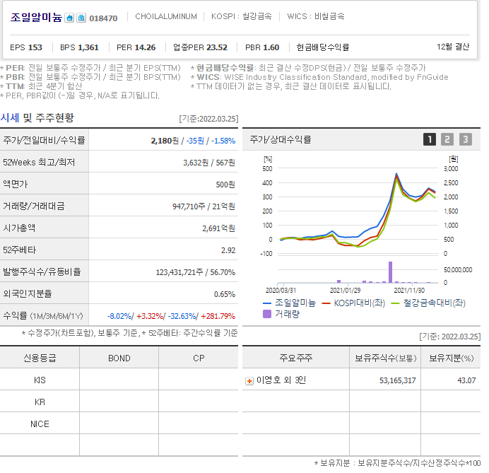 즉, 알루미늄과 관련 있는 제품들을 생산을 하고 있는 기업입니다.