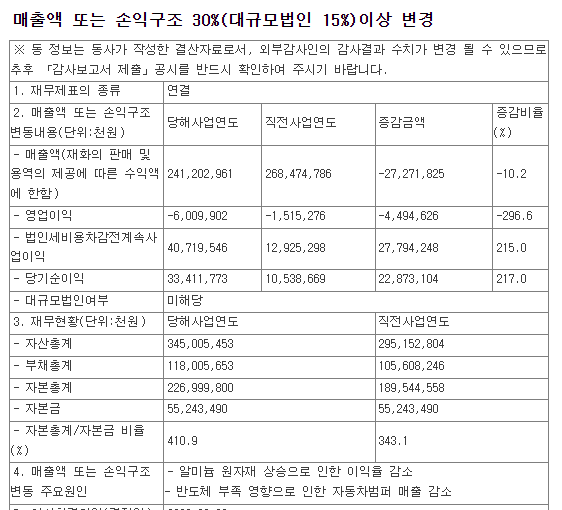 그럼 2021년도 매출액 변동 공시를 살펴보겠습니다.