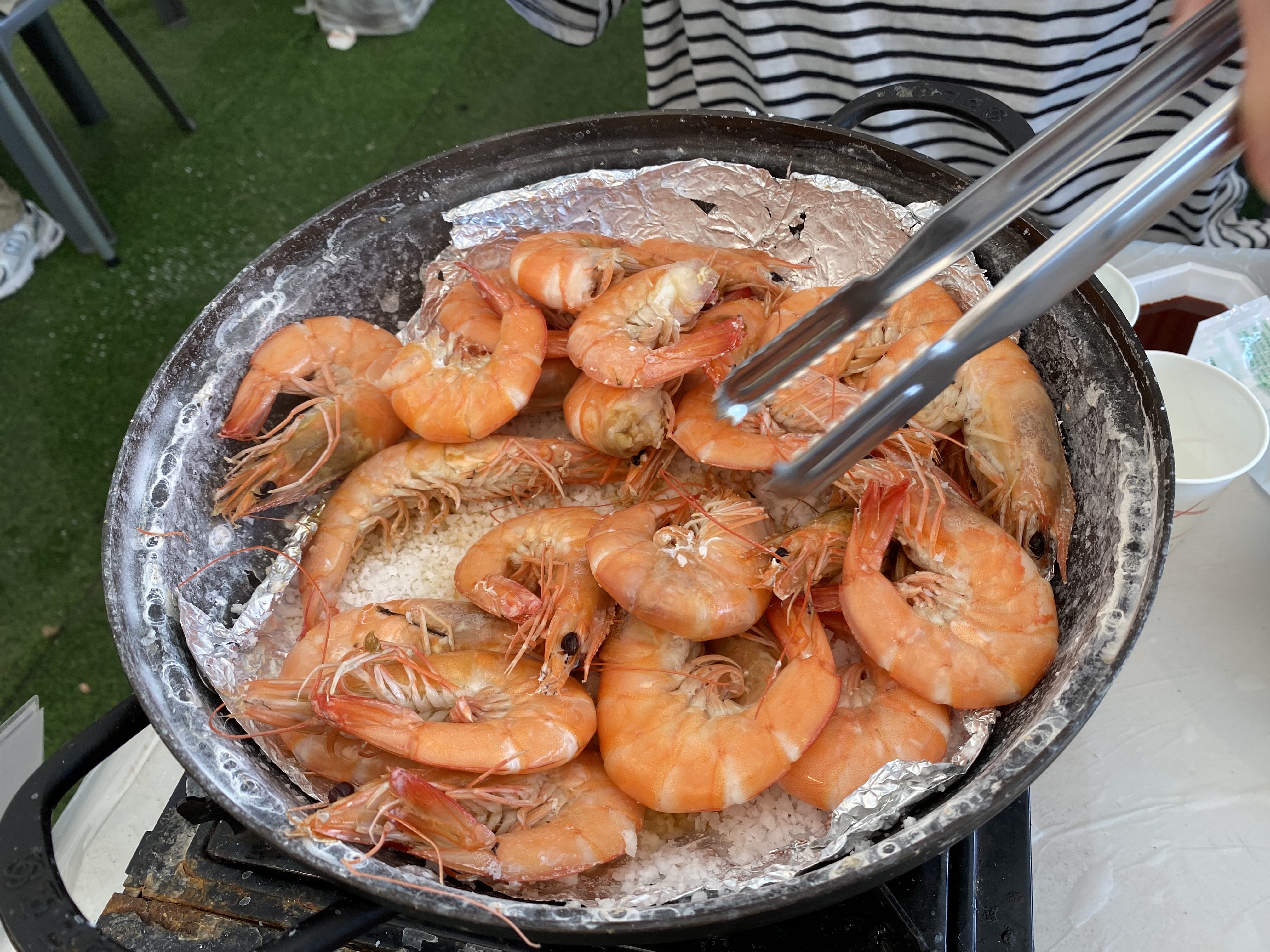 왕새우 구이는 테이블에서 직접 판에 넣어서 구워줍니다. 살아 있는 새우를 보고 먹게 되니깐 더 싱싱한 걸 알 수 있습니다. 살이 엄청 오동통해서 맛있습니다.