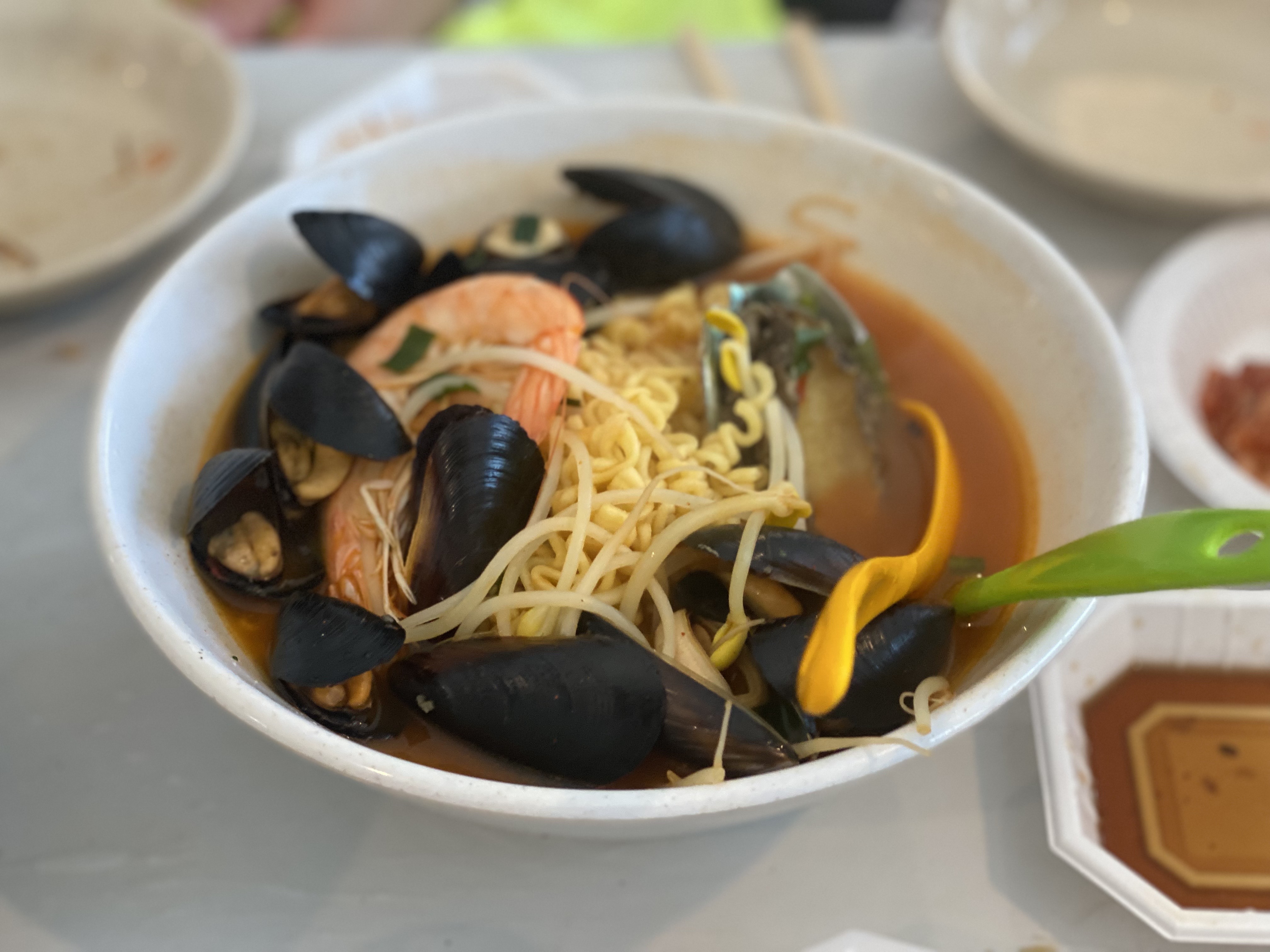 해물라면이 8,000원인데 이 정도 퀄리티면 정말 괜찮습니다. 전복에 새우에 홍합까지 나오니 가성비가 좋습니다.